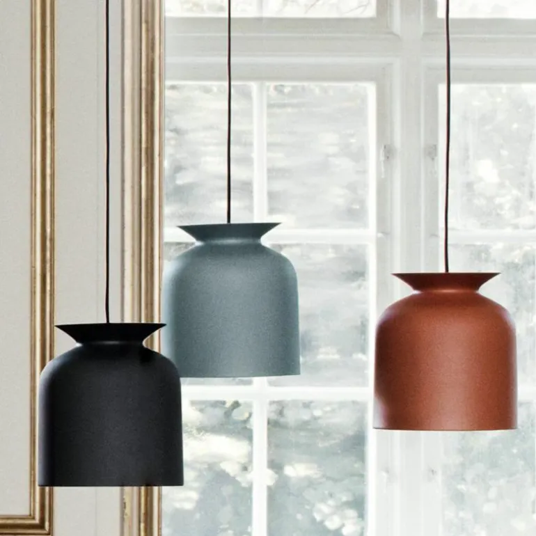 De Ronde Hanglamp is verkrijgbaar in 5 mooie kleuren: zwart, grijs, roest, antracietgrijs en mat wit.r