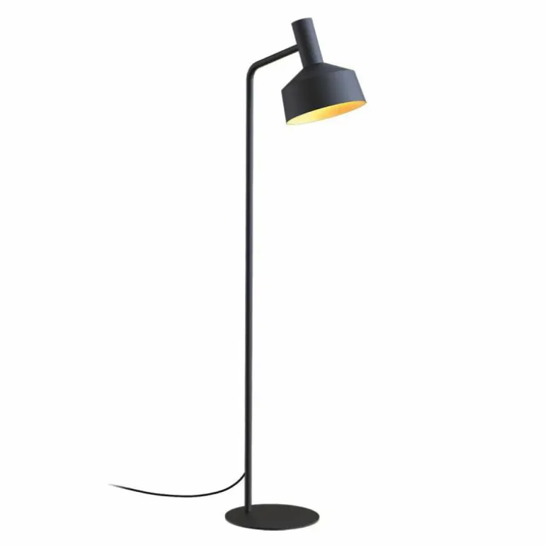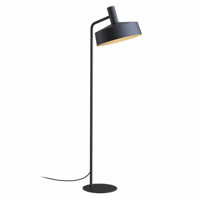 De Roomor Vloerlamp heeft een zwart metalen frame dat gecombineerd kan worden met drie verschillende draaibare lampenkappen met ieder hun eigen uitstraling:r
