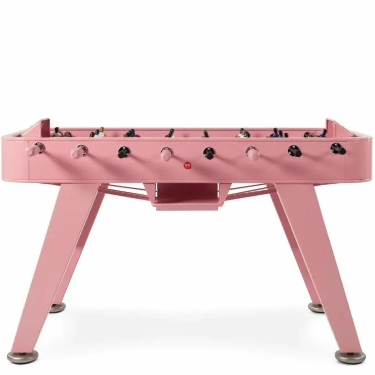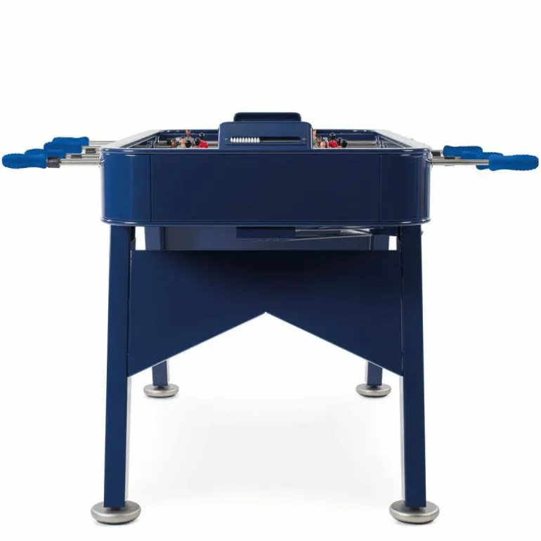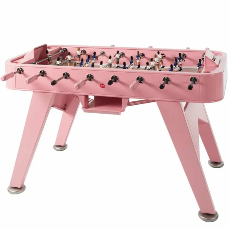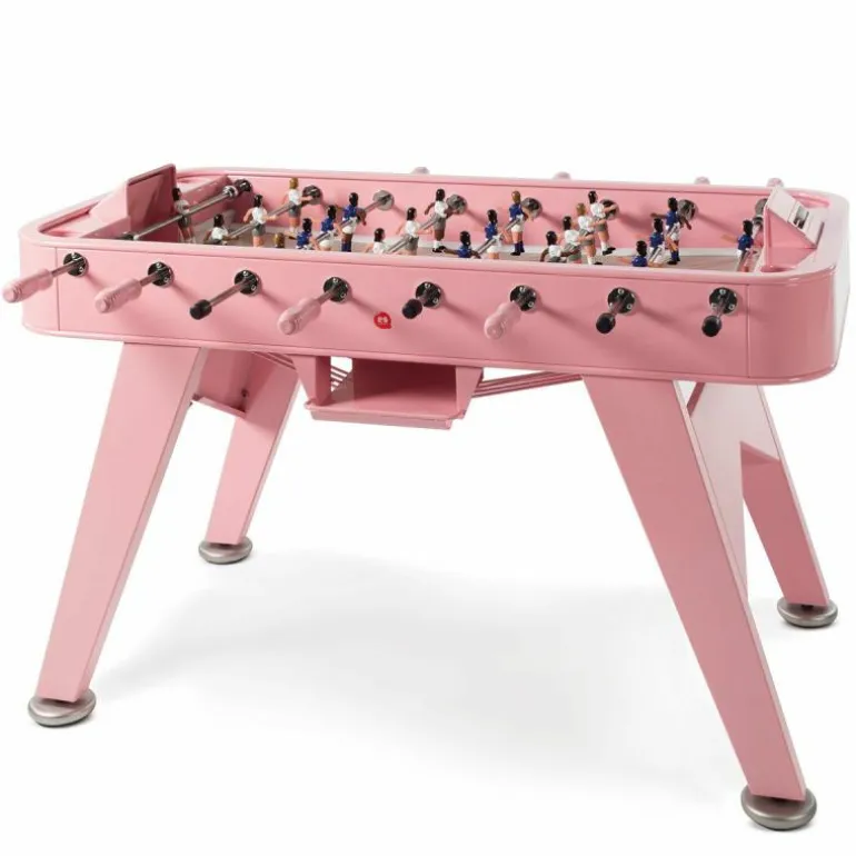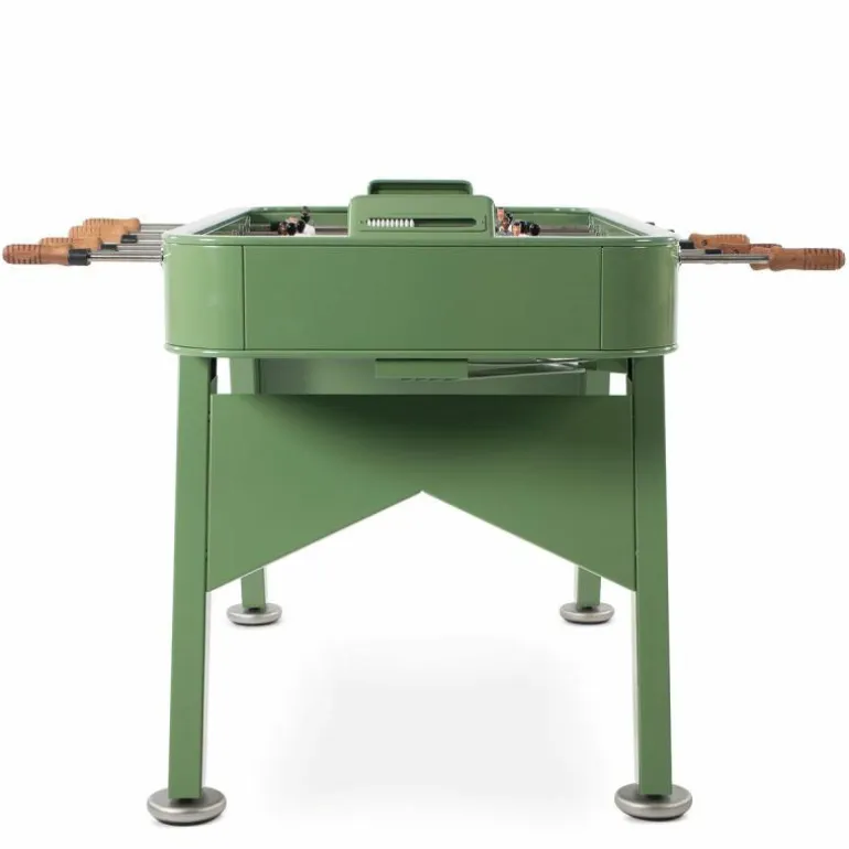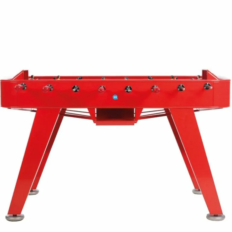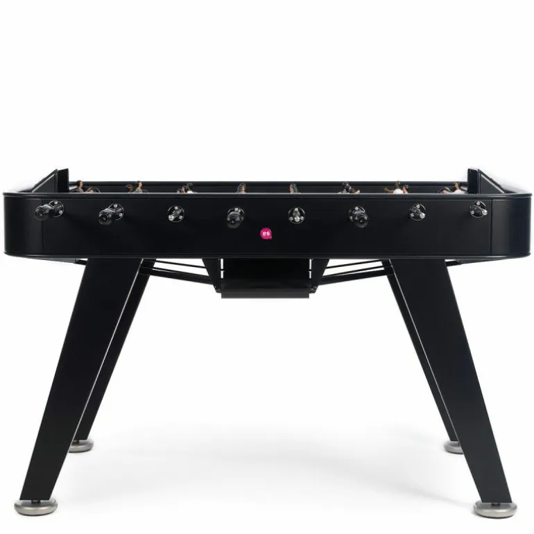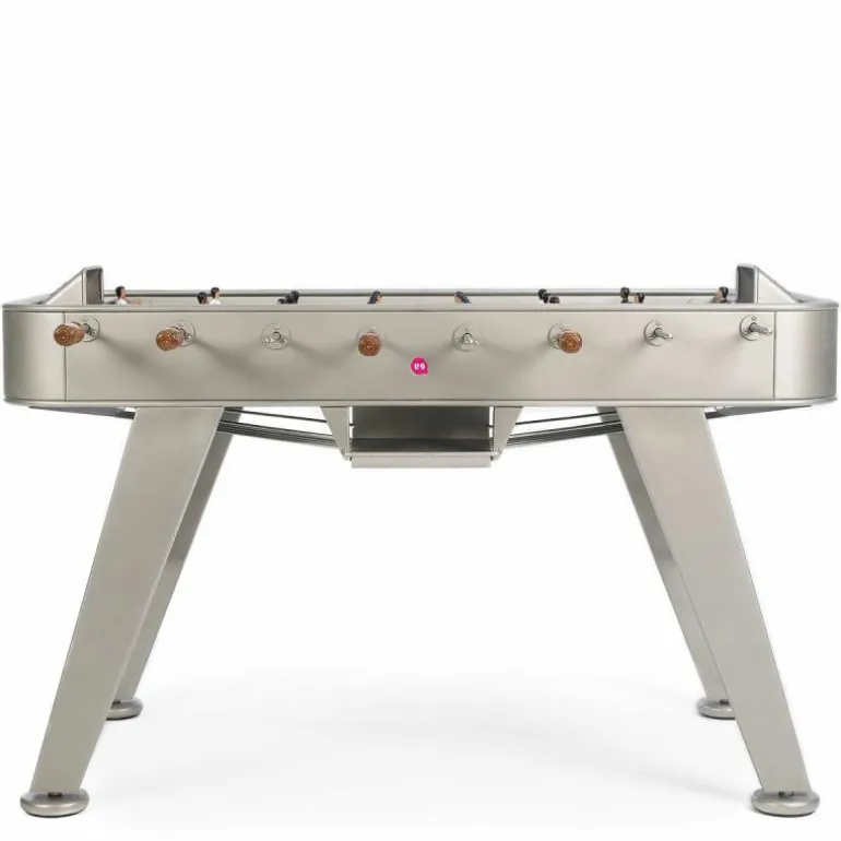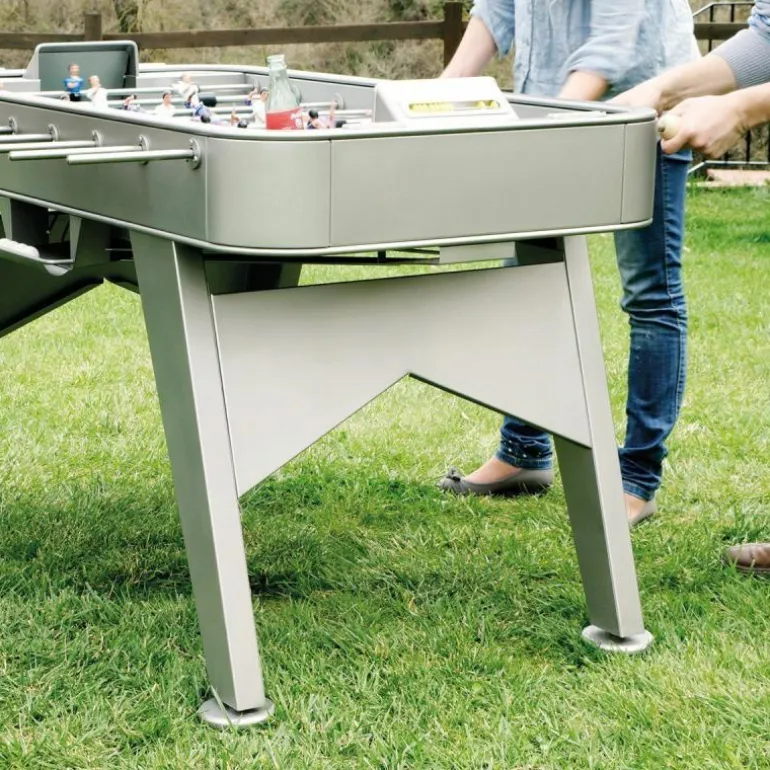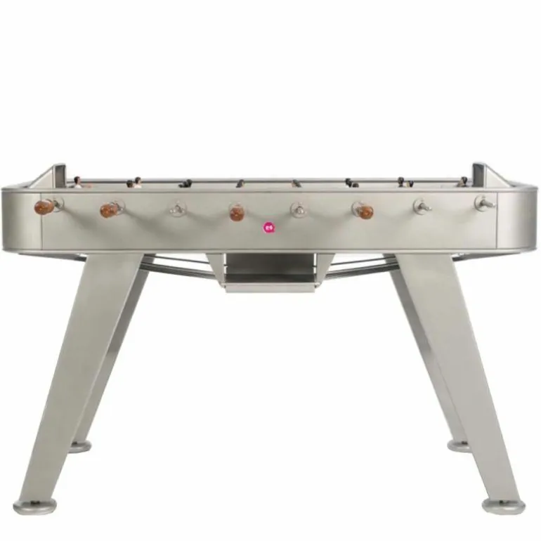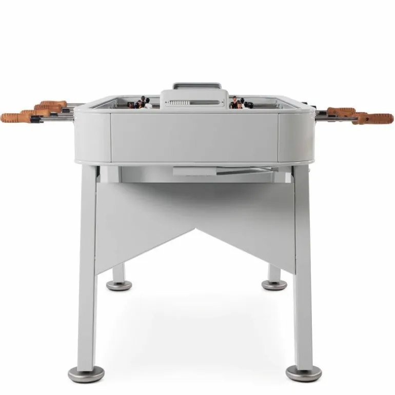 Deze tijdloze voetbaltafel past dankzij zijn tijdloze uitstraling in iedere setting en ruimte, van partijen binnenshuis tot een wedstrijd in het zonnetje buiten. Dankzij de ingebouwde bekerhouders die elk aan een uiteinde van de tafel ingebouwd zijn kunt u tijdens het potje ook genieten van een verfrissende dorstlesser. De tafel wordt geleverd met standaard teams, maar kan helemaal naar eigen wens worden aangepast met exclusieve team-kits. De RS2 is vervaardigd van sterk metaal in verschillende elegante kleuren, en is verkrijgbaar in een indoor variant en een in-/outdoor variant. Het tafelblad is gemaakt van hoge druk laminaat en vormt de ondergrond voor de spelers van gegoten aluminium, die vastzitten aan een stalen buis met houten handvatten.r