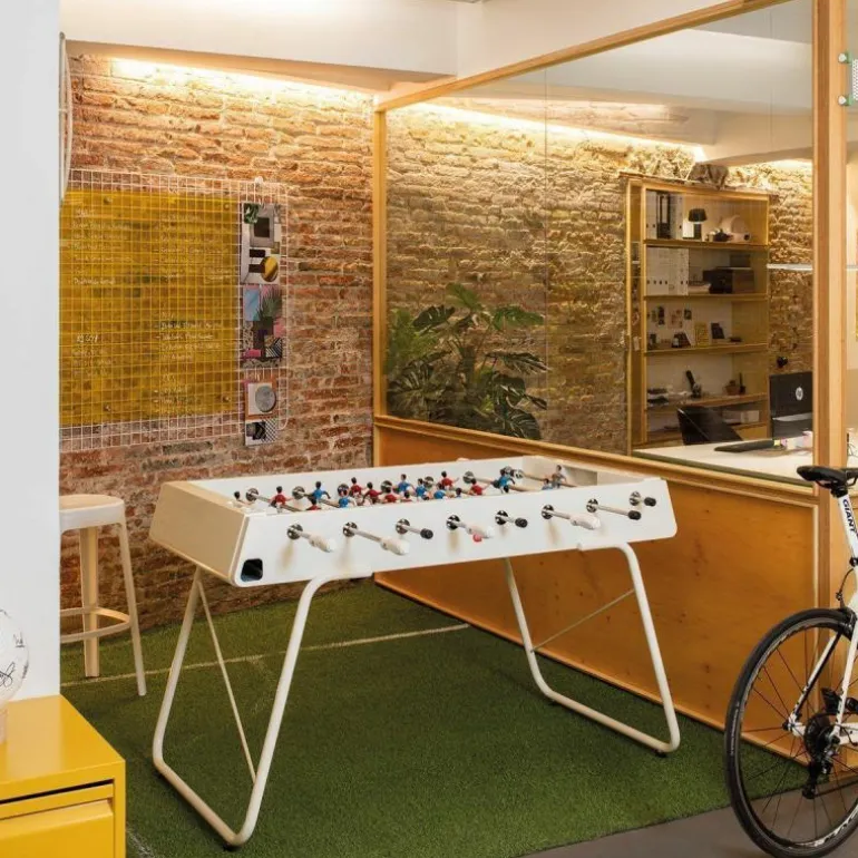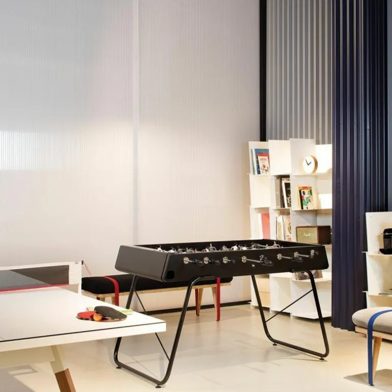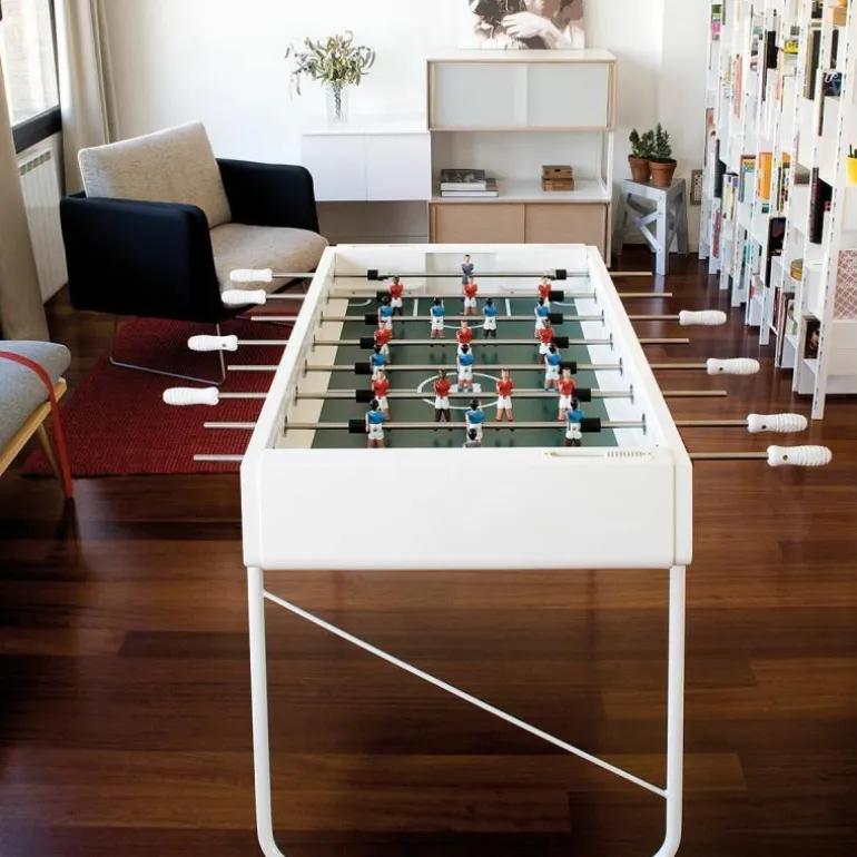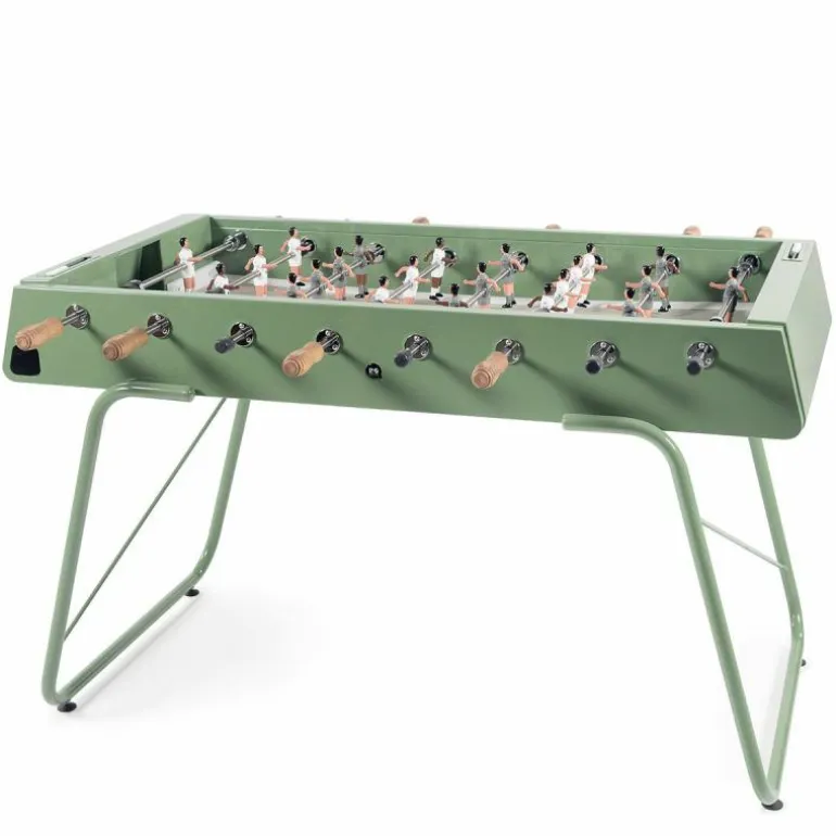 De RS Barcelona RS3 Voetbaltafel is een ontwerp van Rafael Rodríquez. Bij RS Barcelona draait alles om genieten van het leven en dat is te zien in deze persoonlijke re-interpretatie van één van de klassiekers van de Spaanse gamecultuur, die spel, design, duurzaamheid en plezier samenbrengt. Deze design voetbaltafel is het jongere broertje van het eerste ontwerp, de RS2 voetbaltafel, en onderscheidt zich door zijn ranke onderstel. Laat deze lichtere uitstraling u niet voor de gek houden, dankzij zijn robuuste structuur is ook de RS3 opgewassen tegen fanatieke potjes voetbal!r