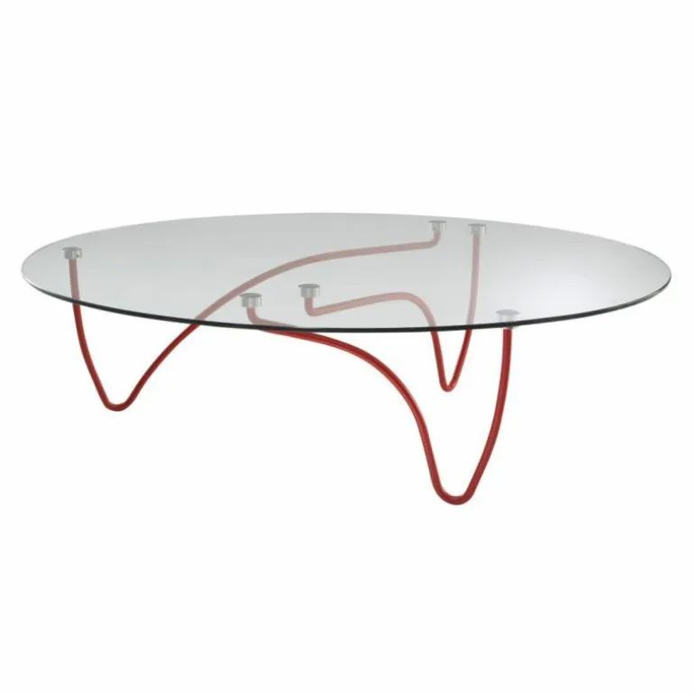 Gevoel voor ritme is bij deze unieke salontafel totaal geen probleem. De ritmisch gevormde poten in combinatie met het geharde glas zorgen voor een speelse uitstraling.r