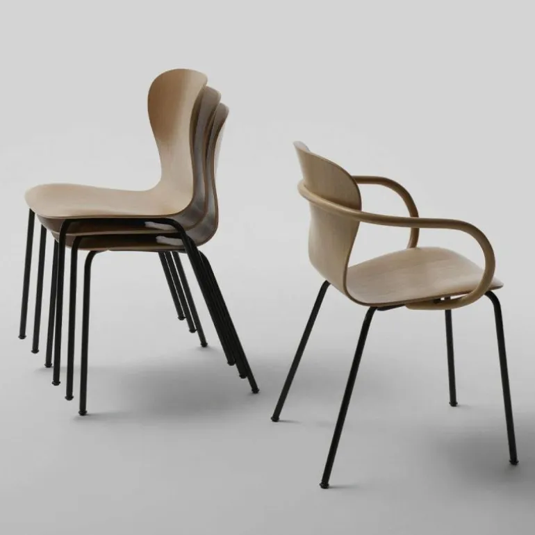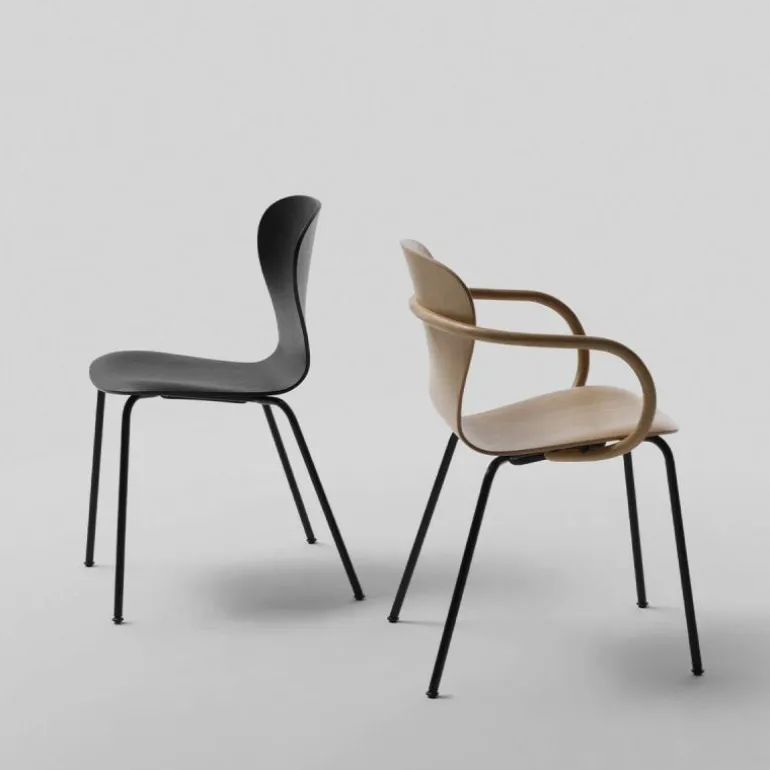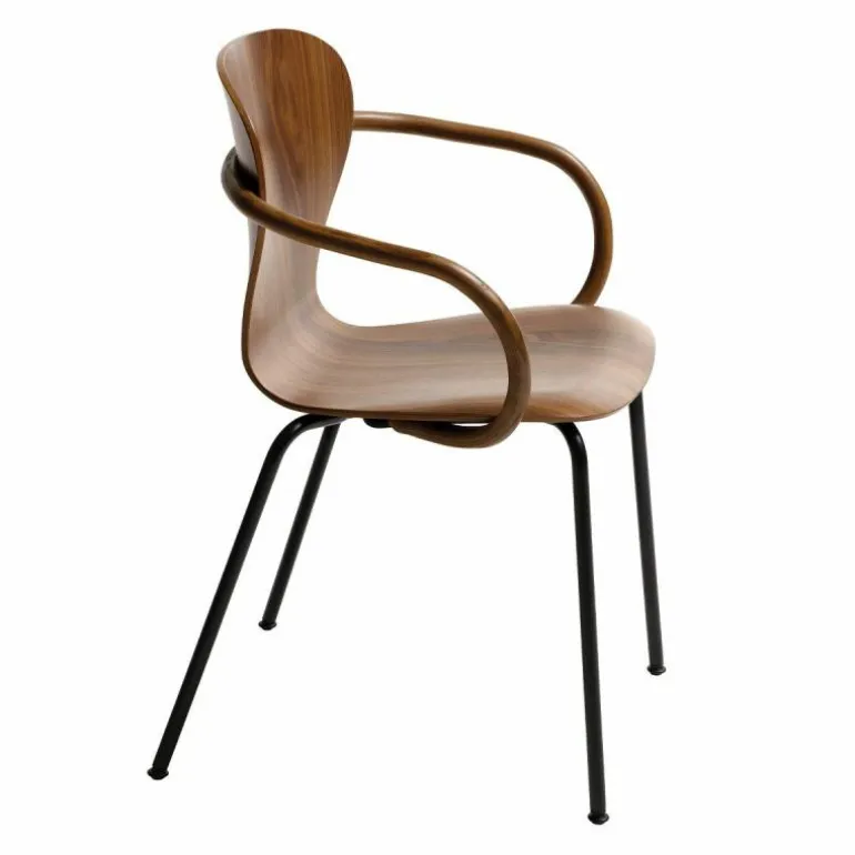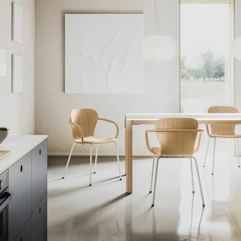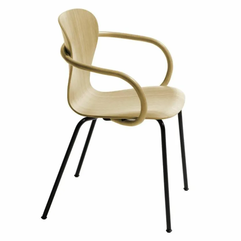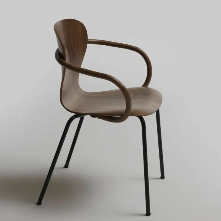 De S 220 F Stoel Met Armleuning heeft een zitschaal en rugleuning van voorgevormd multiplex in gevernist eiken, gebeitst eiken en gevernist walnoothout. De zitting wordt gedragen door een buisvormig onderstel van verchroomd of gepoedercoat staal in verschillende kleuren. Het stalen frame voorziet het klassieke hout van een moderne touch. De stoel is materiaal besparend waardoor hij bijzonder duurzaam is.