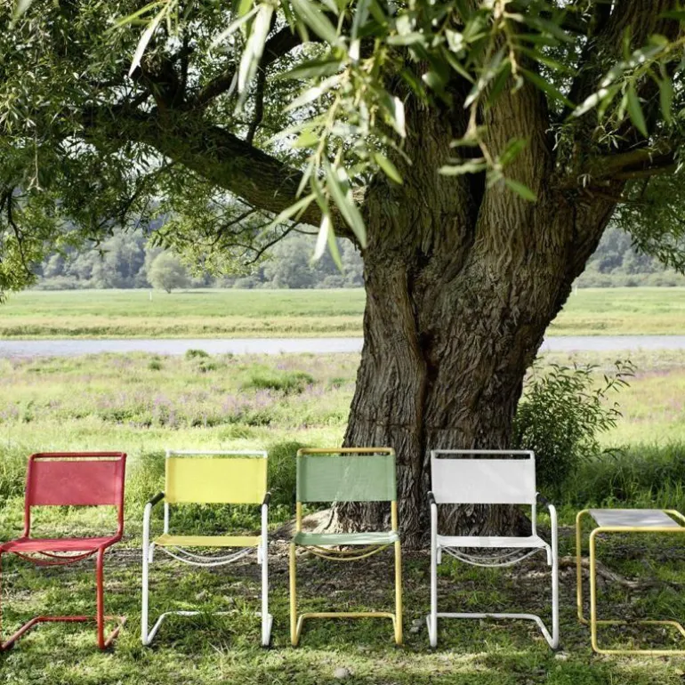 In die missie is Mart Stam zonder twijfel geslaagd. Hoewel het ontwerp van de stoel al ruim negentig jaar oud, misstaat de S 33 N Stoel in geen enkel modern interieur. Maar Thonet heeft nog een stap verder gezet. Door het frame te behandelen met een zelf ontwikkelde coating is de stoel nu niet alleen een eyecatcher binnenshuis, maar ook in uw tuin of op uw balkon. De zogeheten ThonetProtect® coating is oersterk, waardoor de stoel bestand is tegen Uv-straling en ruwe weersomstandigheden. Zelfs als het frame een stevige beschadiging heeft opgelopen verliest de coating z’n kracht niet. Ook de zitting van netweefsel is bestand tegen wind, regen en de felle straling van de zon. r