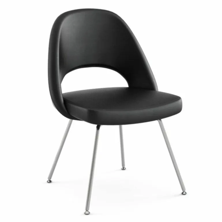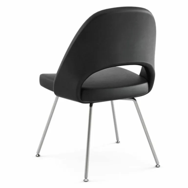 De Conference Chair is in het geval van een metalen onderstel 57 centimeter breed, 79 centimeter hoog en 51.5 centimeter diep. Met een houten onderstel is de stoel in totaal 1 centimeter hoger, namelijk 80 centimeter. De zithoogte bedraagt respectievelijk 46.5 en 47.5 centimeter. Naast deze stoel vindt u de Conference Chair op onze site ook nog in een variant mét arm.