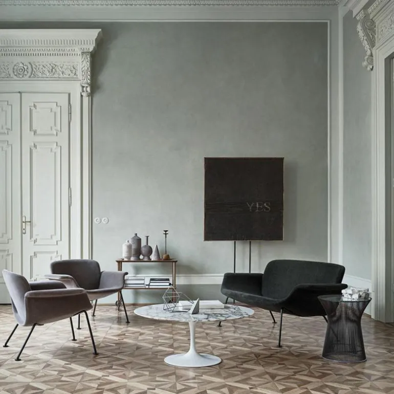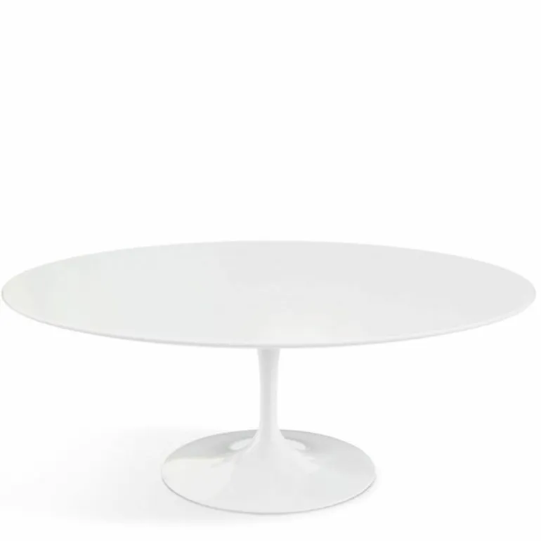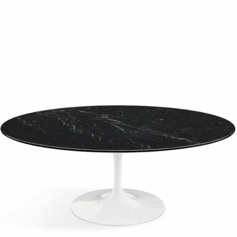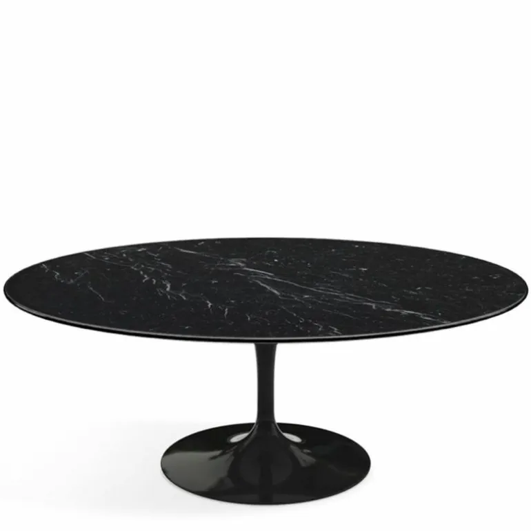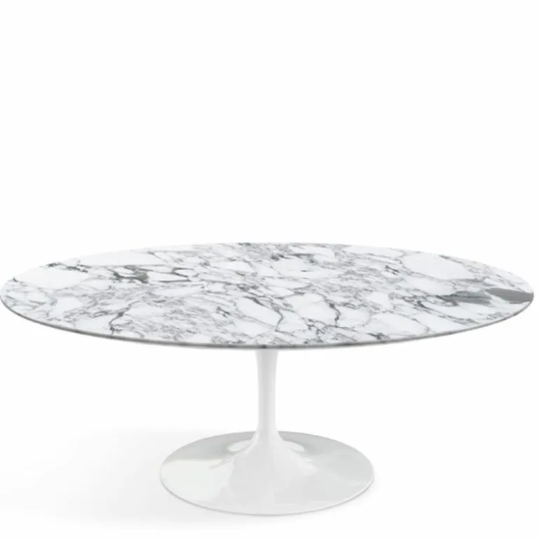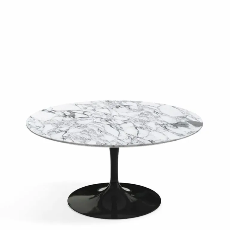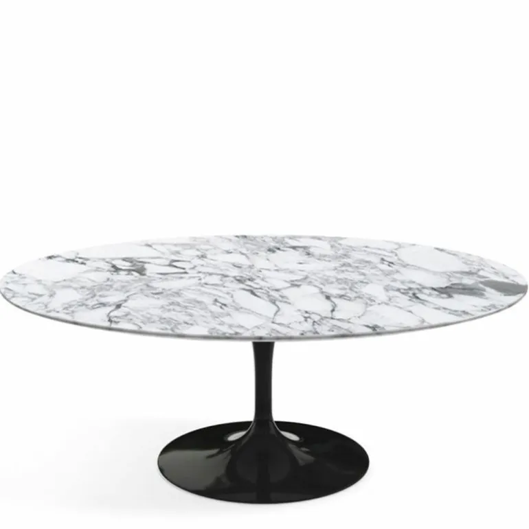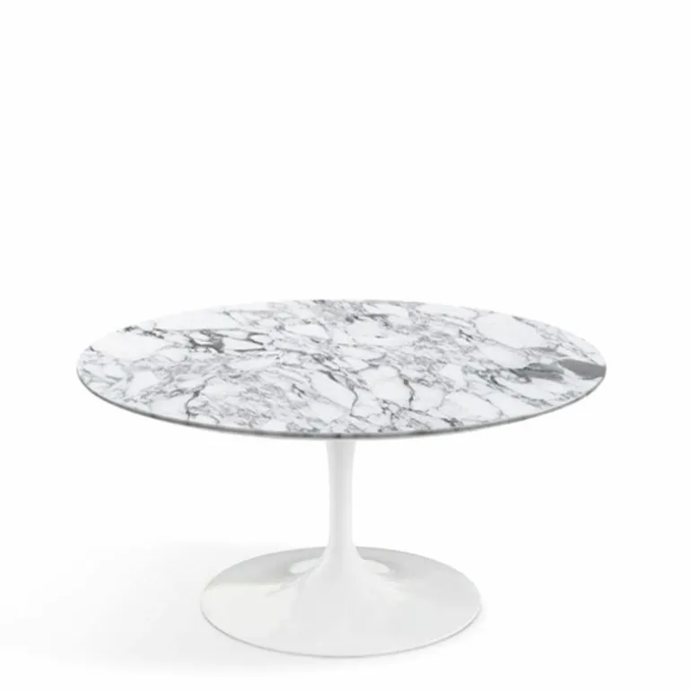 De ronde tafel heeft een diameter van 91 centimeter en is 38/39 centimeter hoog. De ovalen tafel is 107 centimeter breed, 70 centimeter diep en 38/39 centimeter hoog. Het hoogteverschil zit hem in de keuze van materiaal voor het blad. Een blad van laminaat is namelijk 3 centimeter dik, terwijl een marmeren blad 2 centimeter dik is. Laminaat heeft een zijdezachte afwerking en het marmer is voorzien van een transparante polyester coating, om te beschermen tegen vlekken. De voet van gegoten aluminium wordt in zwart of wit geverfd en beschermd met een Rilsan coating. Zowel het blad als de voet is aan de onderkant voorzien van het Knoll logo, als bewijs van authenticiteit.