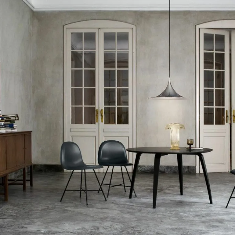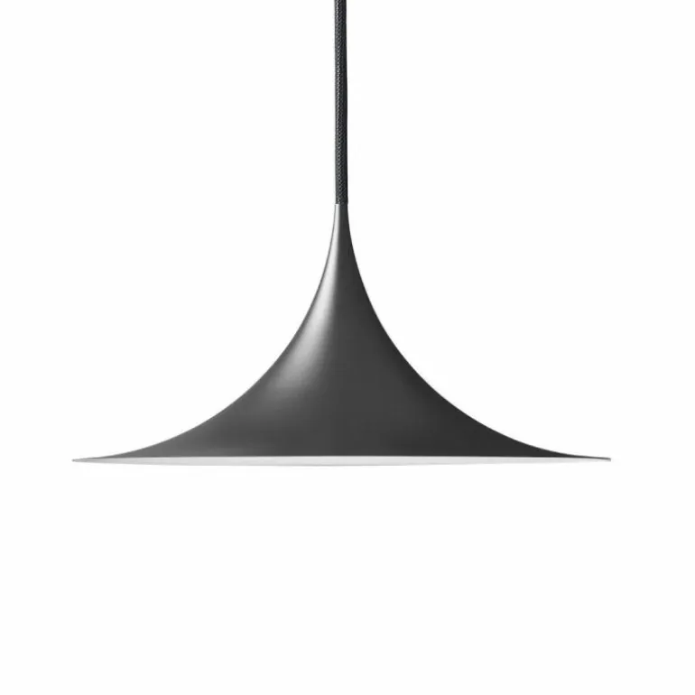 De Semi collectie zorgt voor een diffuus, kegelvormige licht, ideaal boven de eettafel of het werkblad in de keuken. De collectie bestaat uit drie verschillende afmetingen en bevat een verscheidenheid aan kleuren, variërend van klassiek mat wit, zwart en levendige glanzende kleuren tot metalen uitblinkers in chroom, koper en messing.