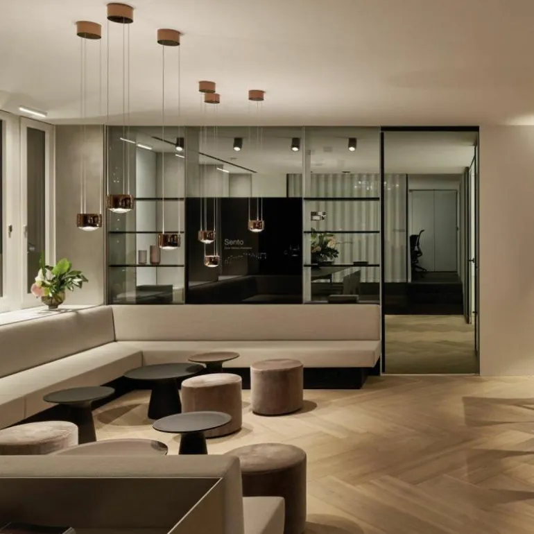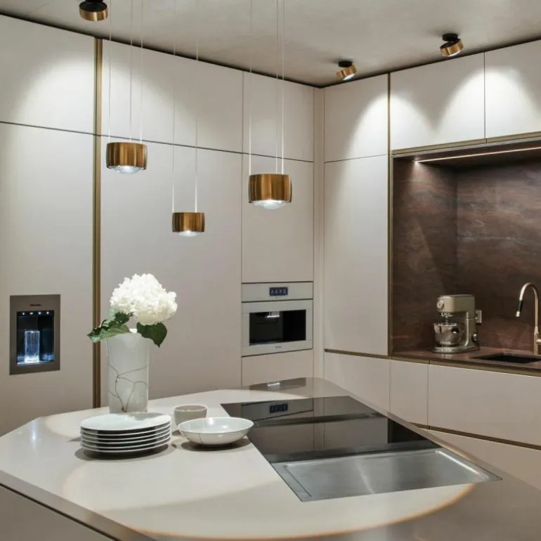 De Sento Sospeso Hanglamp is vervaardigd uit aluminium, staal en kunststof. De hanglamp is verkrijgbaar in mat wit, mat zwart, mat goud, rosé goud, brons, phantom, zwart phantom en glanzend chroom. De diameter van de lamp bedraagt 12,3 centimeter en de hoogte bedraagt 7,2 centimeter. De kabellengte is verstelbaar en varieert van 50 tot 200 centimeter. Bent u geïnteresseerd in een andere montage-uitvoering? Neem contact op met onze interieurspecialisten of kom langs in een van onze winkels. Zij helpen u graag verder.