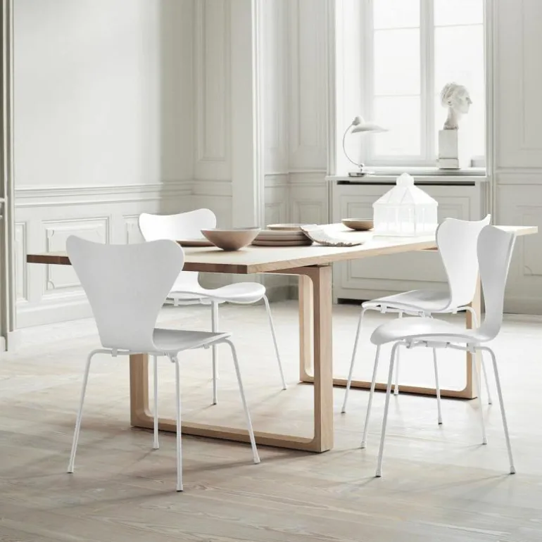 De Series 7 Vlinderstoel Monochrome maakt al meer dan 60 jaar deel uit van de iconische collectie van Fritz Hansen. De geschiedenis van het merk gaat terug tot 1872, toen meubelmaker Fritz Hansen een handelsvergunning kreeg. In de afgelopen 140 jaar kende Fritz Hansen vele hoogtepunten, door onder andere in zee te gaan met Hans J. Wegner en Arne Jacobsen. Uit deze samenwerkingen ontstonden wereldberoemde designklassiekers, zoals de Egg Stoel, de Ant Stoel en natuurlijk de prachtige Series 7 Vlinderstoel. Arne Jacobsen is een Deense designer die afstudeerde aan de Koninklijke Deense Kunstacademie en in zijn werk sterk beïnvloedt werd door Ludwig Mies van der Rohe, Charles en Ray Eames en Bauhaus. Zijn ontwerpen vallen op door hun ogenschijnlijk simpele vormgeving, waar echter keer op keer een ingenieus en vooruitstrevend ontwerp- en productieproces achter schuilgaat. Alle meubels van Arne Jacobsen zijn bovendien functionalistisch, wat inhoudt dat bij hem de functie de vorm bepaalt. Het feit dat het werk van Arne Jacobsen talloze keren gekopieerd is en zijn ontwerpen vandaag de dag nog onverminderd geliefd zijn, geeft aan hoe belangrijk en bepalend zijn invloed op de hedendaagse designwereld is.