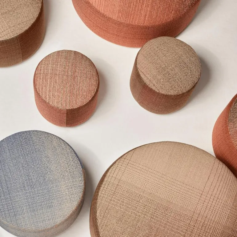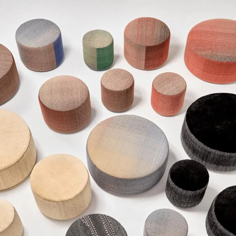 De Shade Poef is ontworpen als cilindrisch zitmeubel met een zachte, uitnodigende structuur en een uitzonderlijk gevoel voor detail. De bekleding bestaat uit zorgvuldig vervaardigde textieloppervlakken met een karakteristiek verloop in kleurtonen. Deze overgangen weerspiegelen de inspiratie uit natuurlijke momenten waarin licht, lucht en landschap samensmelten tot een vloeiende schakering. De manier waarop de kleurnuances zich over het oppervlak verdelen, zorgt voor een rustgevend visueel effect dat een gevoel van welzijn en balans oproept in elke ruimte waarin de poef geplaatst wordt.