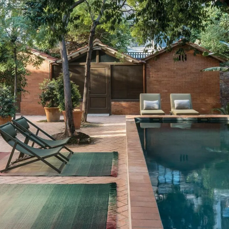 Het Nanimarquina Shade Vloerkleed Outdoor is een ontwerp van Begüm Cana Özgür. Waar de Shade in 2018 uitgebracht werd om onze interieurs te verrijken, heeft het vloerkleed nu ook zijn weg gevonden naar het exterieur. De Shade-serie is vooral te herkennen aan de bijna magische kleurenpaletten die zijn geïnspireerd op de natuur. Verschillende scenes zijn abstract weergegeven, zoals de zacht opkomende zon in het bos waarbij de laatste druppels van een mistige, koele nacht verdwijnen. Dat het outdoor vloerkleed bestand is tegen water komt door het gebruik van materiaal, namelijk 100% PET. Woldraden zijn vervangen door draden van PET materiaal, de kunststof variant die ook vaak terug te vinden is in textielvezels zoals fleece. Net zoals het originele Shade design is ook dit vloerkleed handgeweven volgens de eeuwenoude Dhurrie techniek, waarbij een knoopdichtheid is bereikt van wel 39.600 knopen per vierkante meter! r