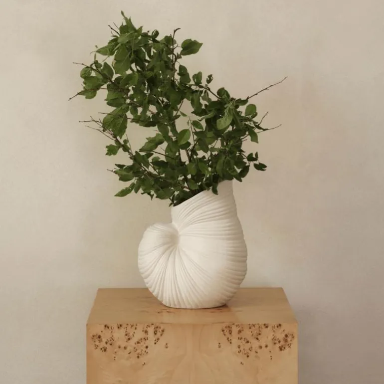 De Ferm Living Shell Vaas is een decoratief object dat de vormen en lijnen van de natuur vertaalt naar een hedendaags ontwerp. De vaas is gemaakt van hoogwaardig aardewerk en wordt gekenmerkt door zachte, golvende contouren die zijn geïnspireerd op de vormen van schelpen. Door dit ontwerp krijgt de vaas een sculpturaal karakter dat in iedere ruimte opvalt.De Shell Vaas is uitgevoerd met een ongeglazuurde buitenzijde die zorgt voor een natuurlijke en tactiele uitstraling. Het oppervlak voelt mat en robuust aan, waardoor de organische vorm extra wordt benadrukt. De binnenzijde is daarentegen voorzien van een glazuurlaag die bescherming biedt en het gebruik als vaas praktisch maakt. Hierdoor is de Shell Vaas geschikt voor zowel verse als gedroogde bloemen. Wanneer de vaas niet in gebruik is, kan zij ook zonder inhoud dienen als een zelfstandig decoratief object dat een interieur verrijkt.Dankzij de neutrale tinten en de ingetogen vormgeving kan de Shell Vaas eenvoudig worden geïntegreerd in uiteenlopende interieurs. In een moderne woonkamer voegt het object een subtiel accent toe, terwijl het in een klassiek ingerichte ruimte juist rust en balans brengt. Het ontwerp maakt de vaas veelzijdig en inzetbaar op verschillende plekken in huis, zoals op een eettafel, een dressoir of een vensterbank.Het formaat van de vaas biedt voldoende ruimte voor grotere boeketten, maar leent zich ook voor minimalistische schikkingen met enkele bloemen of takken. Door de combinatie van functionaliteit en decoratieve waarde blijft de Shell Vaas een veelzijdig en duurzaam element in de inrichting.Voor het onderhoud wordt aangeraden de vaas voorzichtig met lauwwarm water te reinigen. Het ongeglazuurde oppervlak kan variaties in textuur vertonen die horen bij het materiaal en bijdragen aan de authentieke uitstraling. Deze details benadrukken het ambachtelijke karakter van de vaas en maken ieder exemplaar uniek.De Ferm Living Shell Vaas onderscheidt zich door materiaalgebruik, zorgvuldige afwerking en een ontwerp dat verwijst naar de natuur. Het is een object dat kan worden ingezet als praktische vaas voor bloemen, maar dat ook zelfstandig als sculpturaal accent fungeert. Door de combinatie van een organische vorm, een tijdloos kleurgebruik en duurzame materialen vormt de Shell Vaas een blijvende aanvulling op het interieur.