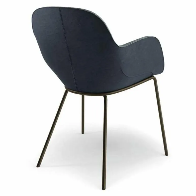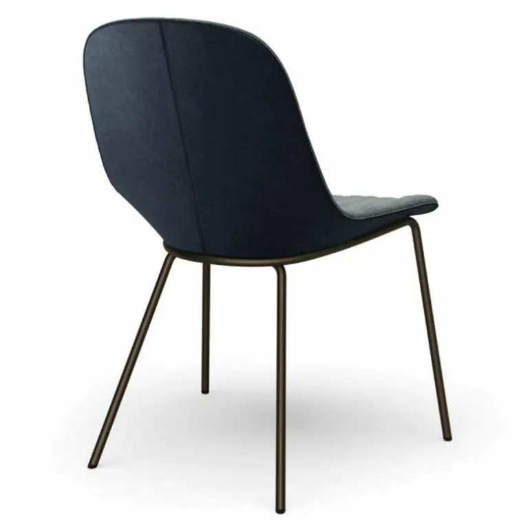 Deze stoel is verkrijgbaar in zes uitvoeringen: twee daarvan zijn voorzien van een mat bronzen onderstel, twee hebben een gepolijst chromen onderstel en de laatste twee hebben een onderstel van gebrand en geolied eiken.r