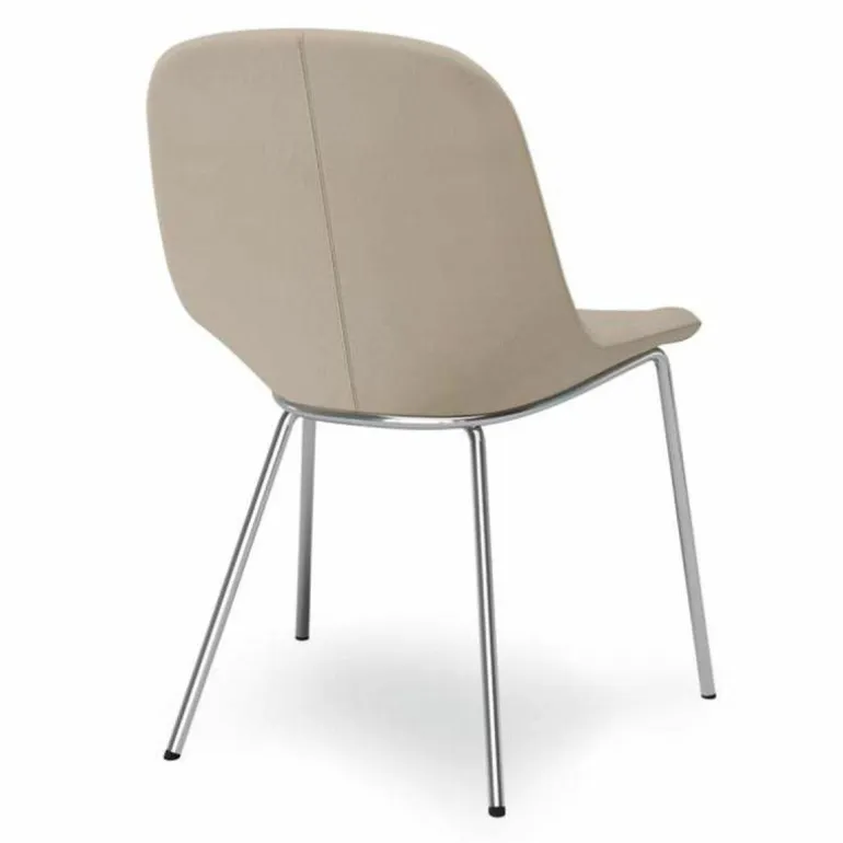 De zitschaal is gemaakt van plastic en bevat openingen in de zitting en rugleuning. Deze openingen zijn bedekt met elastische banden in een waaier patroon wat de zitting een lichte vering geeft. Voor het onderstel heeft u de keuze uit een houten onderstel of een onderstel van staal. r
