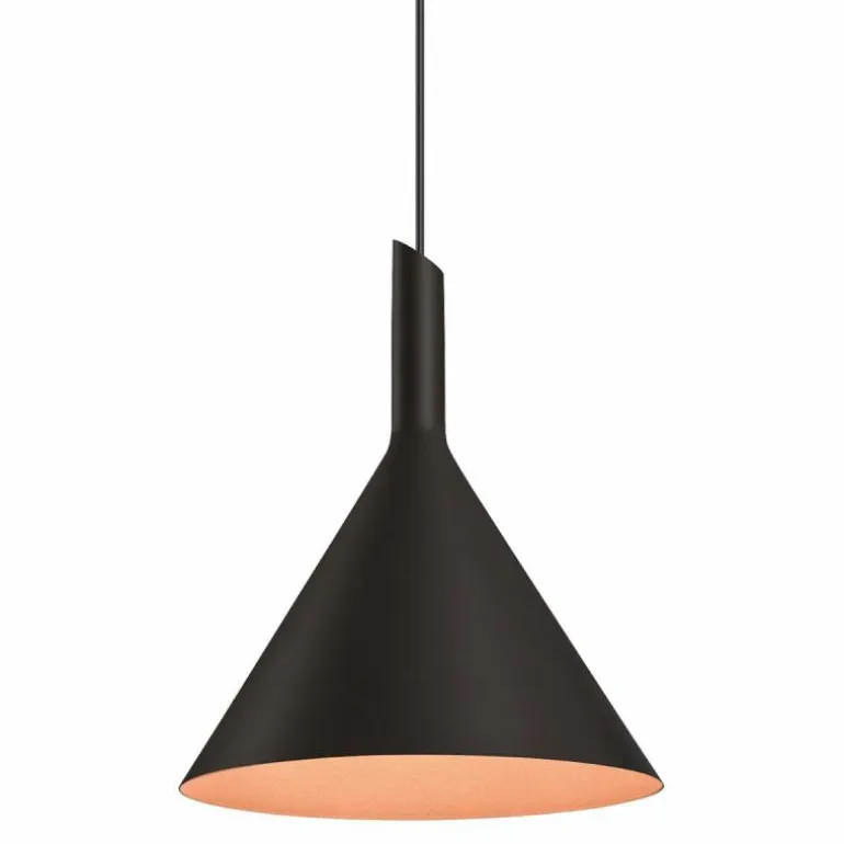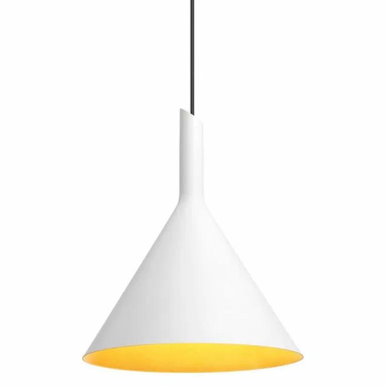 Wat de uitstraling betreft wordt de hanglamp gekenmerkt door een archetypische lampenkap, die modern en strak is vormgegeven. De minimalistische armatuur met prachtig schuin afgesneden kelk is gemaakt van gepoedercoat aluminium dat in meerdere, breed toepasbare kleuren gelakt kan worden. Standaard heeft de lamp een zwart snoer. Op aanvraag kan echter een wit snoer meegeleverd worden.r