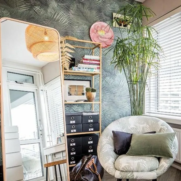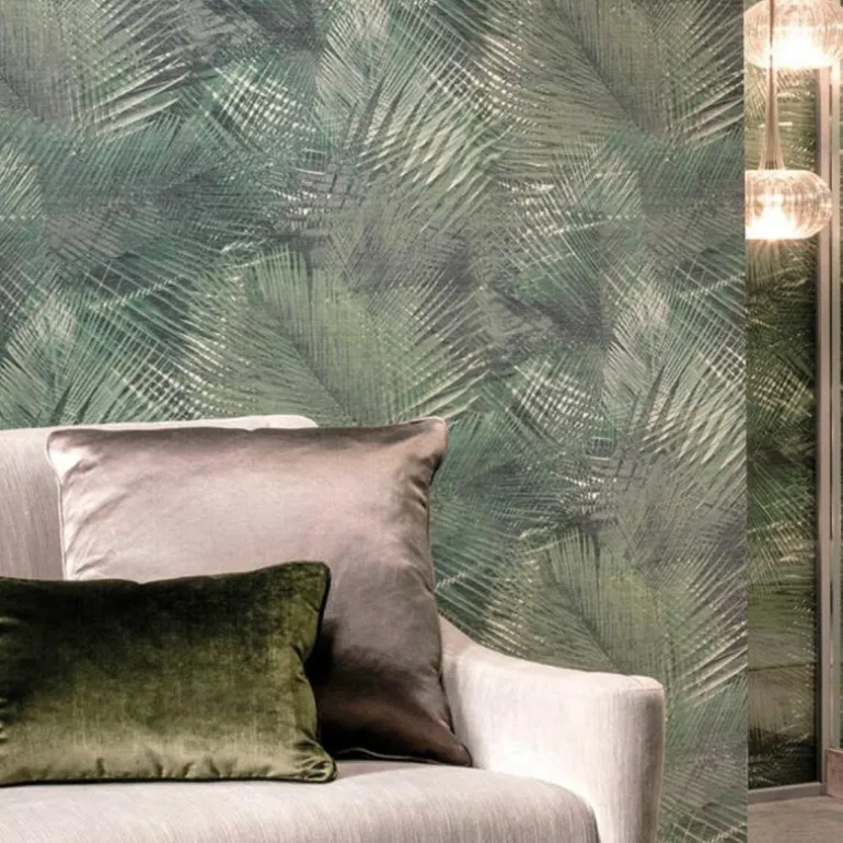 Het Arte Shield behang is een ontwerp van Arte Studio. Het behang is onderdeel van de Avalon collectie, een bijzondere collectie met mystieke prints en natuurlijke materialen, waarmee u de tropische natuur in huis haalt. Genoemd naar het mythische eiland Avalon, waar volgens de sage alles in overvloed bloeit. Het Shield behang draait volledig om de tropische favoriet, de palmboom. De afgelopen jaren evolueerde deze tot stijlvol element in verfijnde interieurs. In het design van Shield zijn de palmbomen zeer gedetailleerd uitgewerkt en wordt er met verschillende kleurtinten diepte gesuggereerd. Combineer deze details met de voelbare structuur van geweven gras en de illusie van uw botanische tuin komt tot leven.r