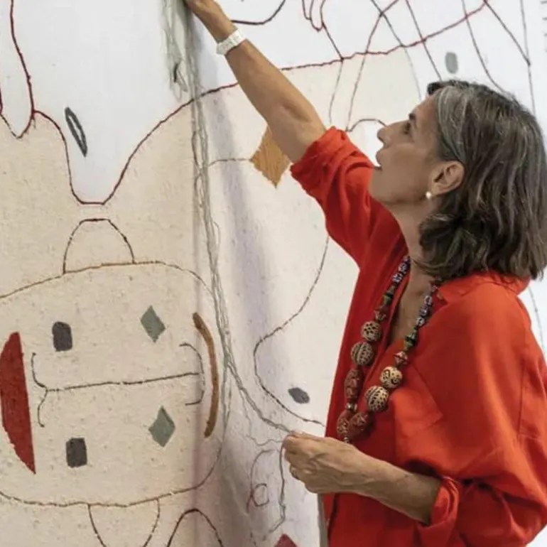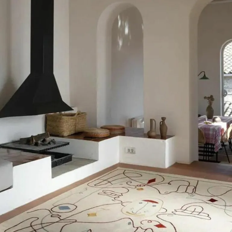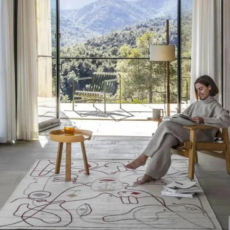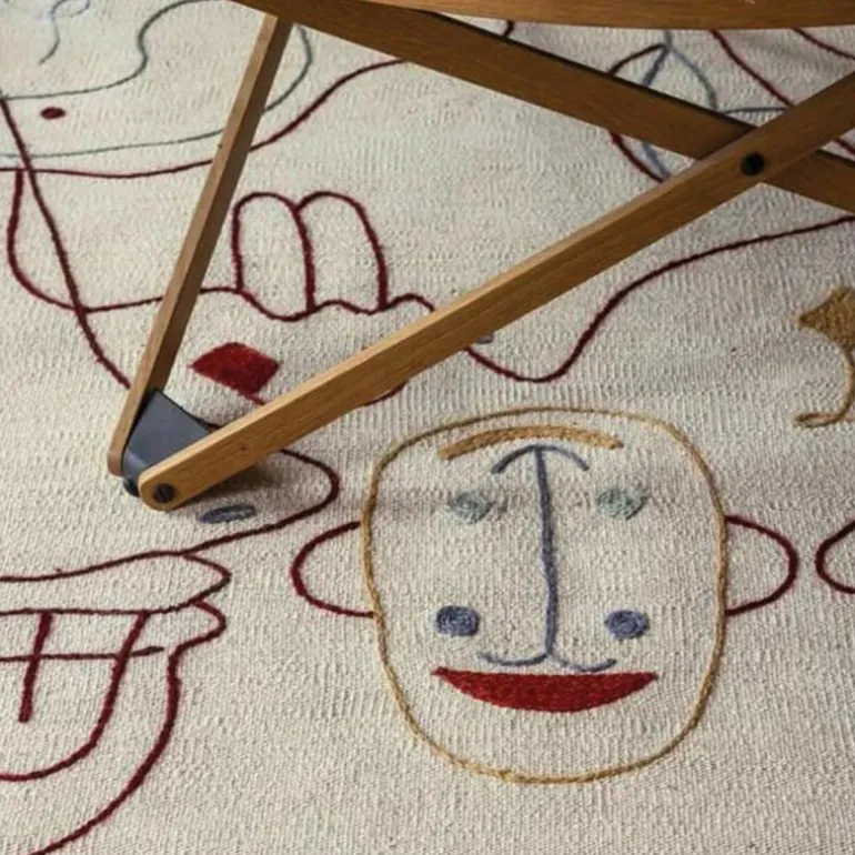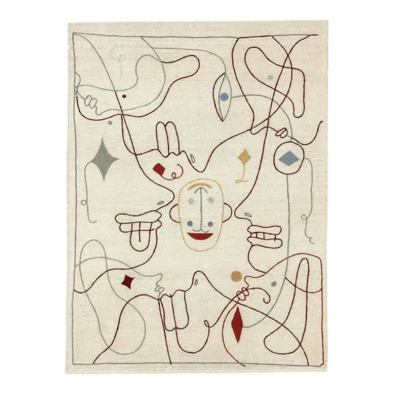 Het Nanimarquina Silhouette Vloer- en Wandkleed is een ontwerp van Jaime Hayon en dit bijzondere design vrolijkt zonder twijfel iedere ruimte meteen op. Hayon heeft de illustraties van de gezichten verdeeld over verschillende hoeken van het vloerkleed om zo diverse perspectieven te bieden. Op deze manier kan het vloerkleed dus in elke ruimte, op elke manier neergelegd worden zonder dat dit afdoet van de illustratie. De naam heeft het vloerkleed te danken aan de elegante lijnen die de silhouetten van denkbeeldige personages illustreren. De verschillende lijnen die vloeiend in elkaar overlopen en elkaar kruisen zorgen voor een mooie compositie. Niet alleen is het ontwerp geschikt om voeten op te laten rusten, maar het Silhouette kleed vormt ook een waar statement als wanddecoratie. r