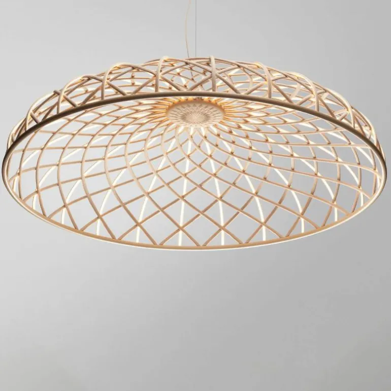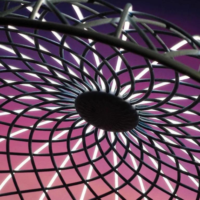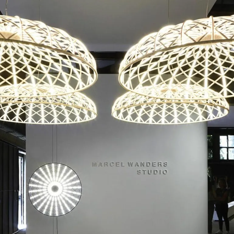 De FLOS Skynest Hanglamp is een ontwerp van Marcel Wanders Studio Elegantie en technische innovatie komen samen in deze nieuwste creatie in samenwerking met FLOS. De Skynest Hanglamp heeft op het eerste gezicht de typische herkenbare lampenkap vorm. De Skynest heeft echter veel meer te bieden. r