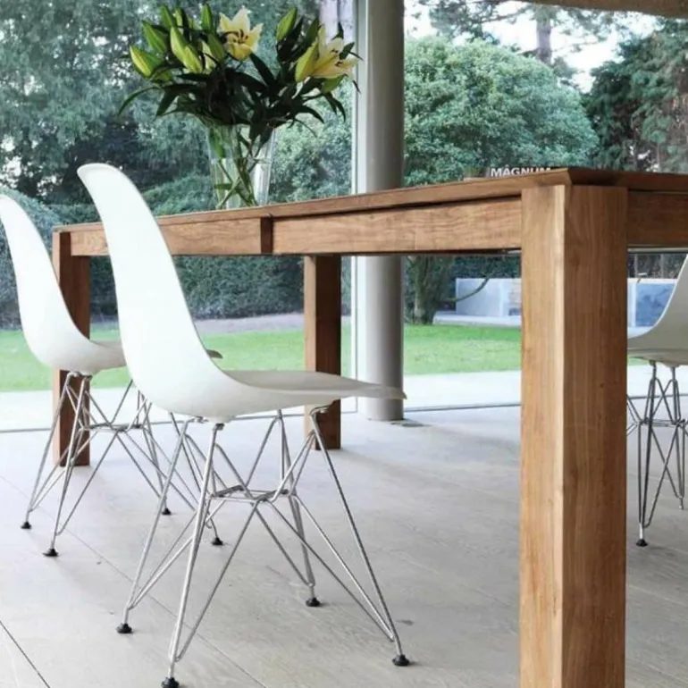 De uitschuifbare Slice eettafel is verkrijgbaar in meerdere afmetingen, zodat er voor zowel kleinere als grotere ruimtes een passende variant beschikbaar is. Het verlengmechanisme is gebruiksvriendelijk en duurzaam uitgevoerd, waardoor het openen en sluiten soepel verloopt en jarenlang betrouwbaar blijft.