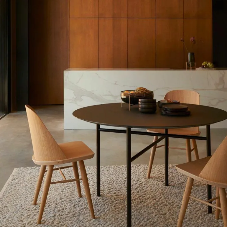 De Menu Snaregade Tafel Rond is ontworpen door Norm Architects. Deze tafel heeft dé ingrediënten die nodig zijn voor een moderne klassieker. De schoonheid van deze tafel ligt zowel in het tijdloze design als het perfecte praktische van de Snaregade Tafel. Door het slanke onderstel is er onder de tafel maximale ruimte gecreëerd voor benen en stoelen. De Snaregade Tafel is geschikt voor zowel een gezellig diner als voor zakelijke vergaderingen. r