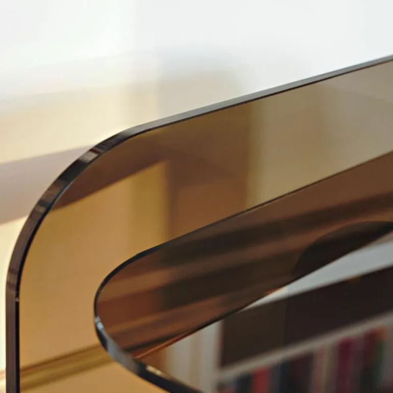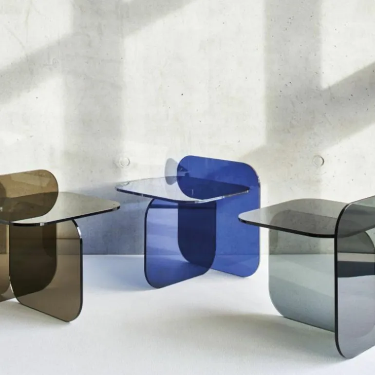 De Sol Bijzettafel is 50 cm breed, 51 cm hoog en heeft een diepte van 46 cm. Zo hebben de glaspanelen een dikte van 1,2 cm en is de bijzettafel te verkrijgen in drie verschillende kleuren. Er is de keuze uit een bronskleurige en grijze variant die vervaardigd zijn uit gekleurd glas. Maar er is ook de mogelijkheid om te kiezen voor een blauwe Sol Bijzettafel van kristalglas.