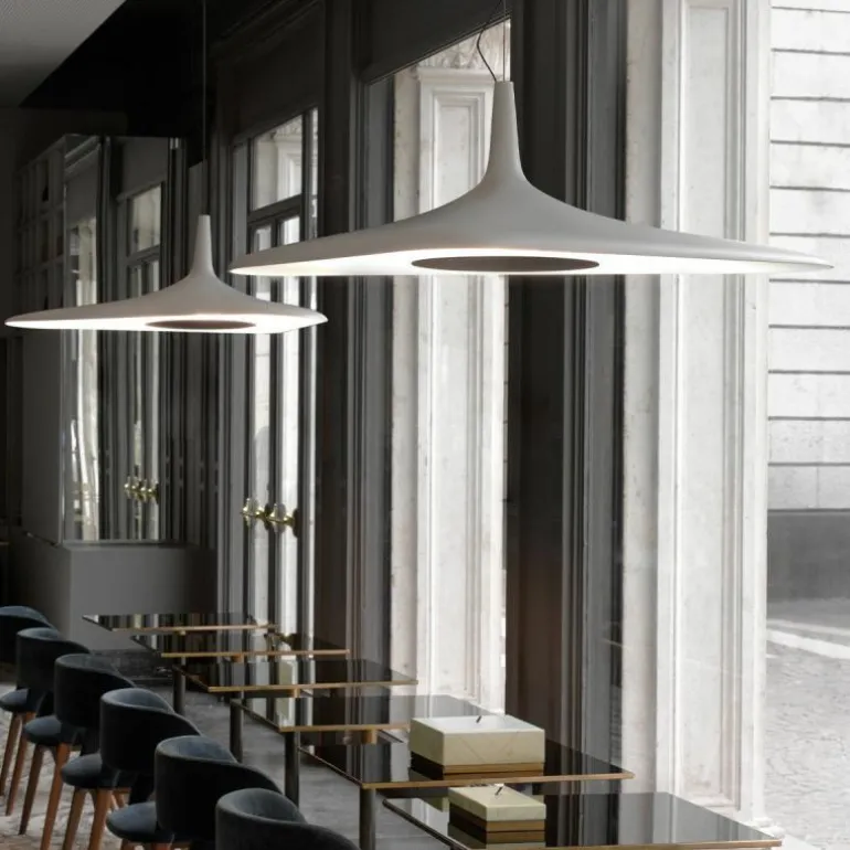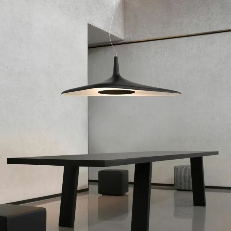 Ondersteund door een enkele asymmetrische kabel, behoudt de lamp zijn evenwicht aan de hand van de slanke lampvorm. Een object dat de wetten van de fysica tart dankzij het samengaan van technologie en design.r
