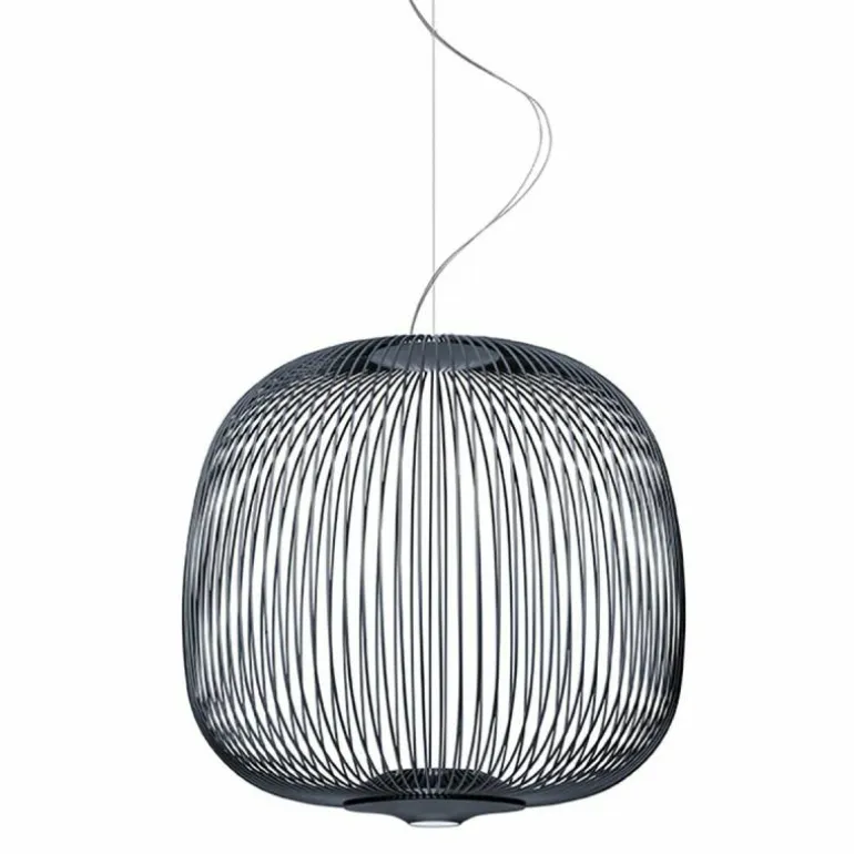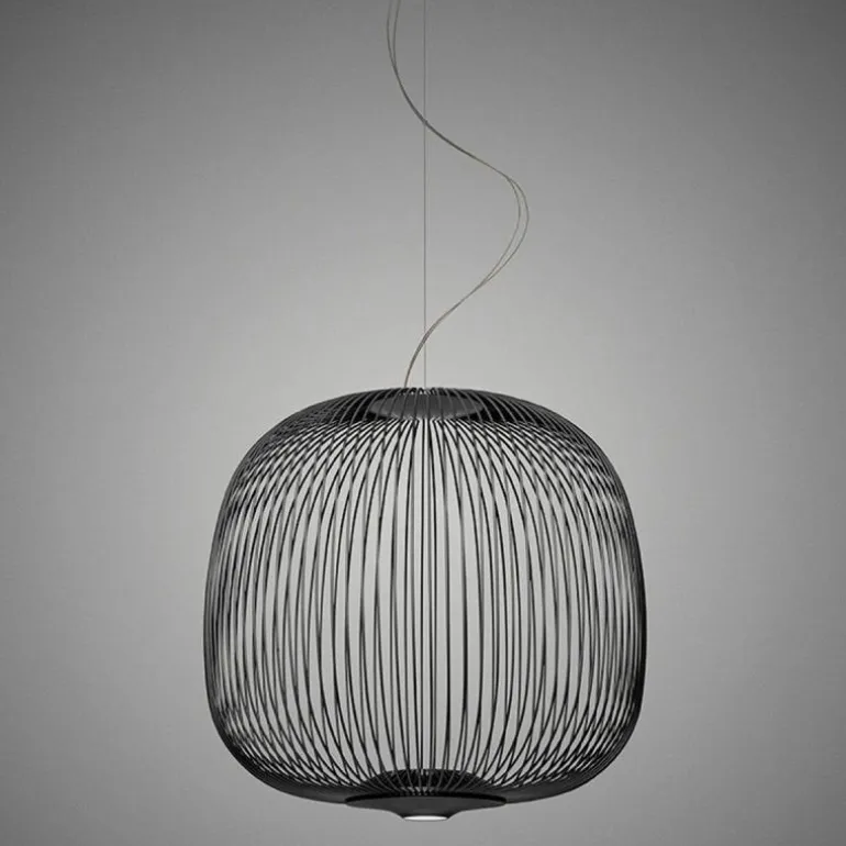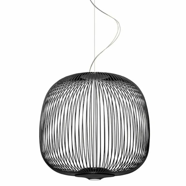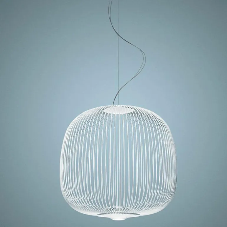 De Spokes 2 Midi Hanglamp, van de ontwerper Garcia Cumini, is geïnspireerd op beelden van antieke oosterse lantaarns en minder exotische volières. De designer vond de naam voor de hanglamp na het observeren van een fietswiel. Het resultaat is een lichtgewicht hanglamp met zachte vormen. De lamp is voorzien van twee lichtpunten: de één schijnt naar boven waardoor een bijzonder spel van schaduw en licht op het plafond verschijnt, de ander schijnt een direct en functioneel licht naar beneden. r