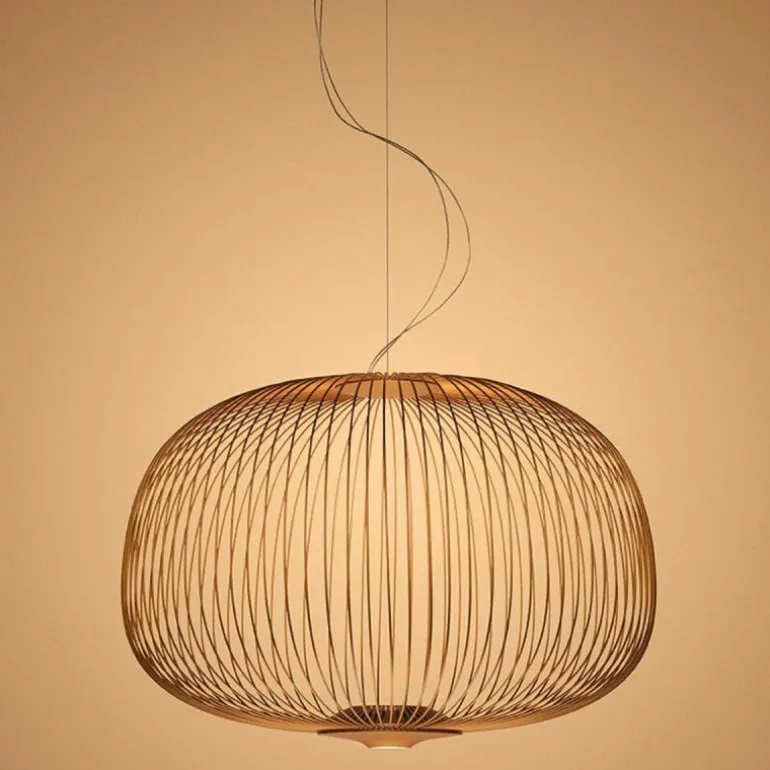 De Foscarini Spokes 3 MyLight Hanglamp, van de ontwerper Garcia Cumini, is geïnspireerd op beelden van antieke oosterse lantaarns en minder exotische volières. De designer vond de naam voor de hanglamp na het observeren van een fietswiel. Het resultaat is een lichtgewicht hanglamp met zachte vormen. De lamp is voorzien van twee lichtpunten: de één schijnt naar boven waardoor een bijzonder spel van schaduw en licht op het plafond verschijnt, de ander schijnt een direct en functioneel licht naar beneden. r