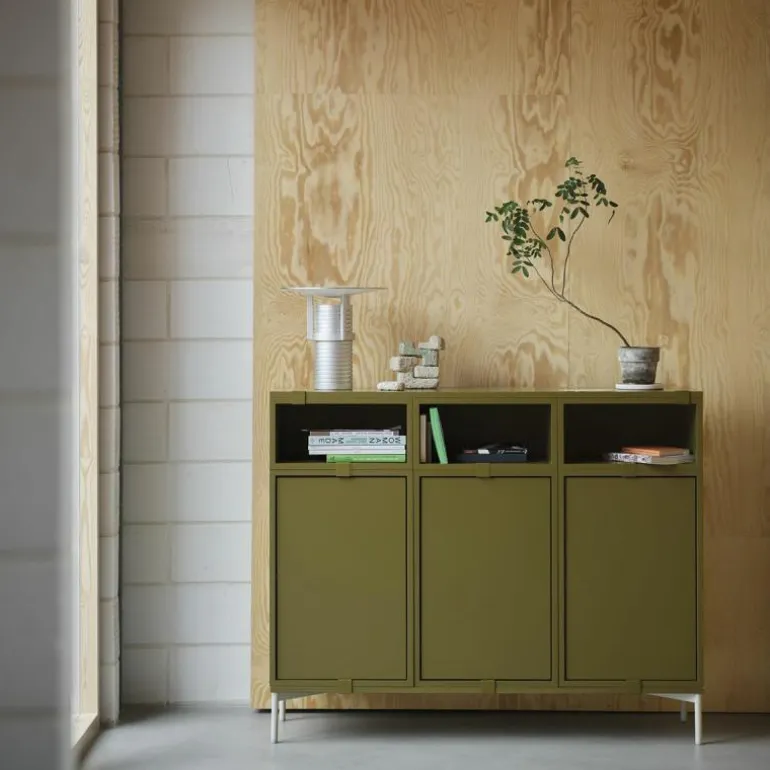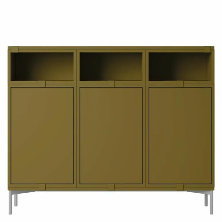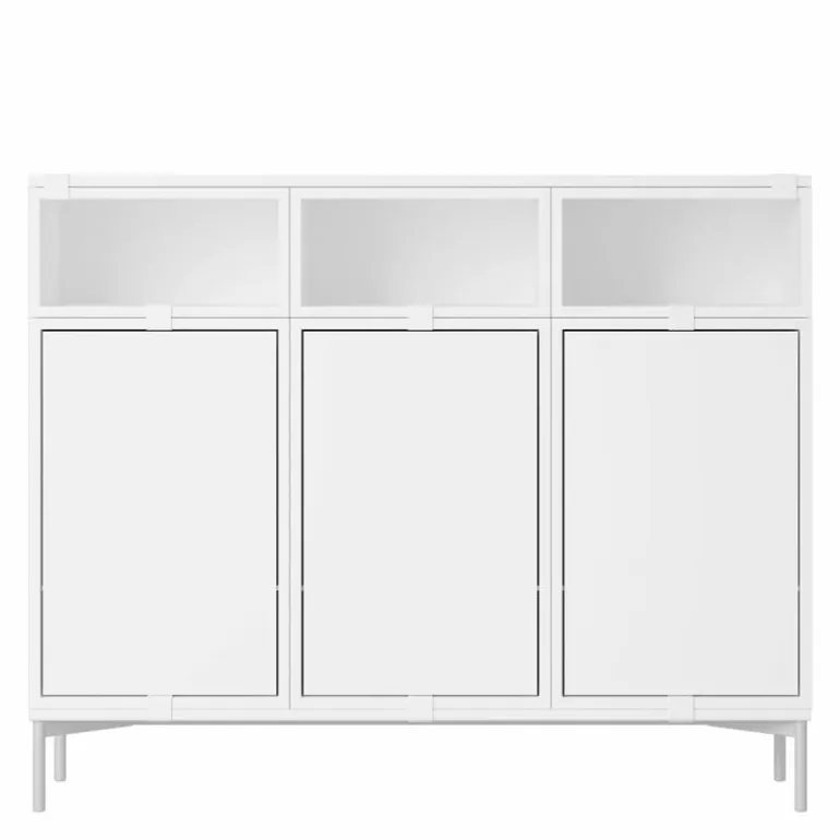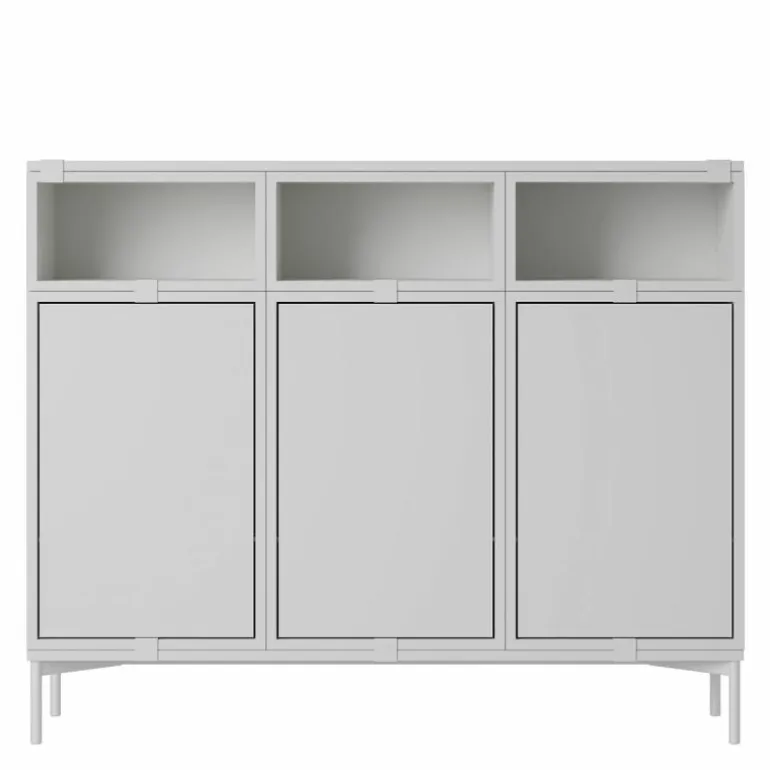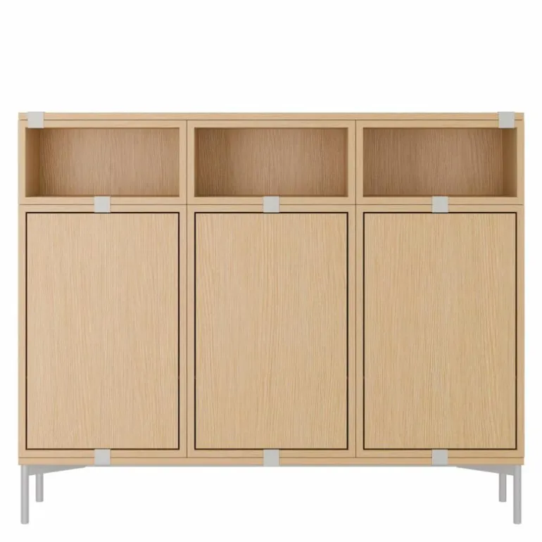 Elke Stacked module kan afzonderlijk worden gebruikt of samen worden gesteld in verschillende combinaties om een gepersonaliseerd dressoir te creëren. De modules zijn beschikbaar in diverse kleuren, waaronder wit, grijs, eiken en bruin groen. Naast hun veelzijdigheid in configuratie, kunnen de modules met een achterpaneel ook direct aan de muur worden gemonteerd, wat extra stabiliteit en een strak uiterlijk biedt. Het Stacked Dressoir Combinatie 3 heeft een afmeting van 131 cm breed bij 106 cm hoog en een diepte van 35 cm.