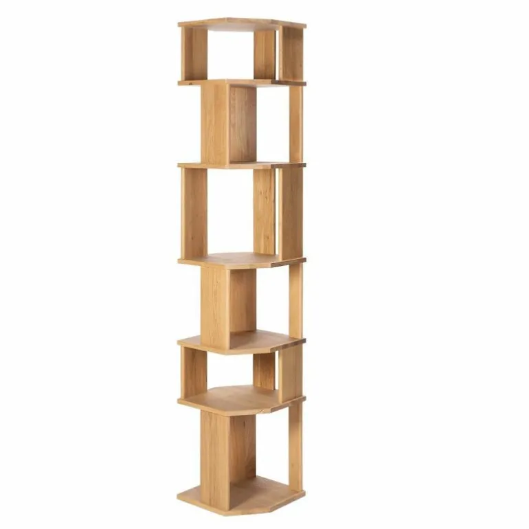 De Ethnicraft Stairs Column Kast is een ontwerp van Alain van Havre. Bent u op zoek naar een rustieke eyecatcher in de ruimte? De Stairs Column biedt uitkomst. Dit meubelstuk behoort tot de Stairs-serie van het bekende merk, en laat precies zien waar Ethnicraft goed in is.. hout. Zoals de naam al een beetje verraadt komt er een trapconstructie voor in dit design. Het ontwerp is opgebouwd uit verschillende massief eikenhouten vlakken, die zowel horizontaal als verticaal op elkaar bevestigd zijn in hoeken van 90 graden. De verticale gedeeltes hebben een ronde afwerking, dit geeft een subtiele retro uitstraling. De horizontale oppervlaktes daarentegen zijn recht afgewerkt en benadrukken het moderne karakter van de kast. Gebruik de Stairs Column niet alleen om uw mooiste accessoires en boeken in tentoon te stellen, maar ook als room divider.. Omdat het ontwerp in een trapconstructie is opgebouwd geeft het weinig doorkijk, maar behoudt het zijn luchtige uitstraling! Multifunctioneel, daar houden we van in onze moderne samenleving. r