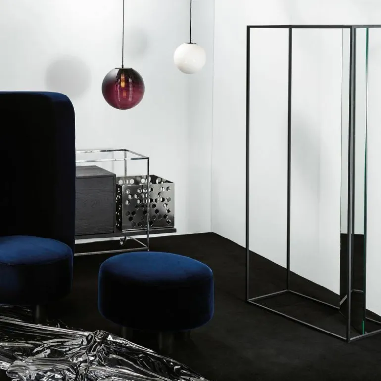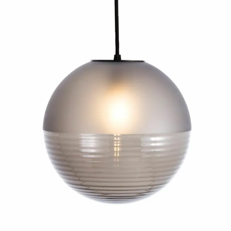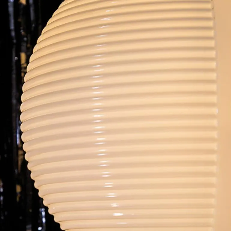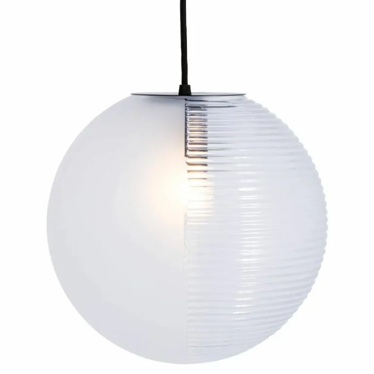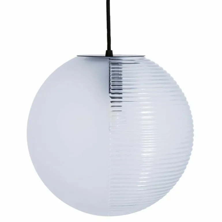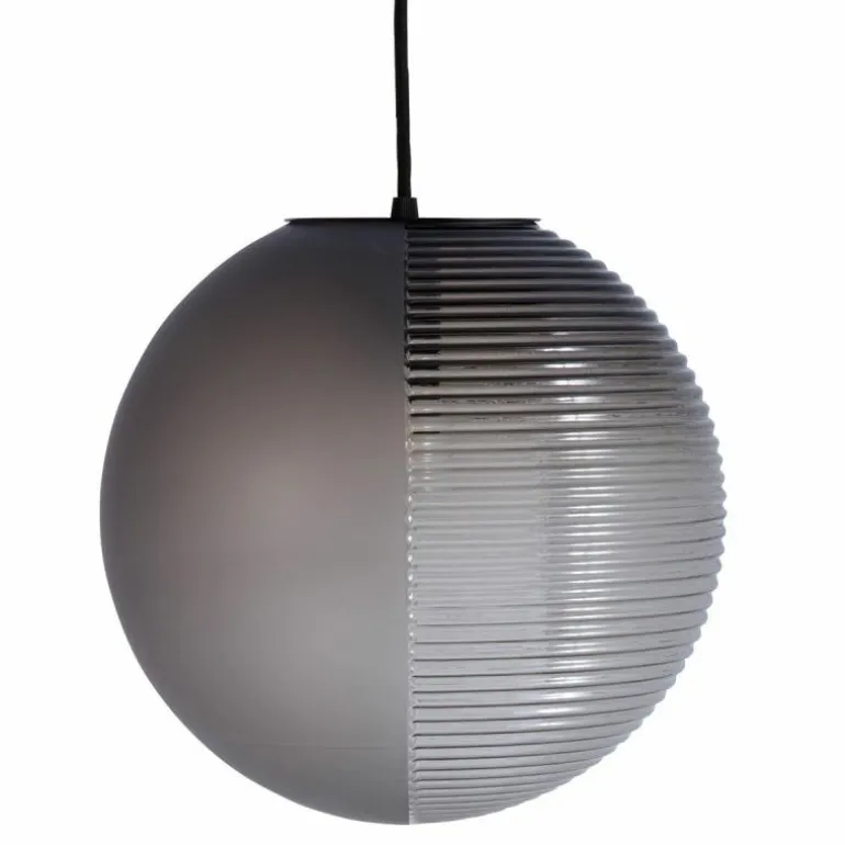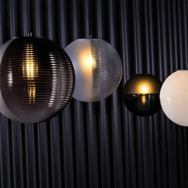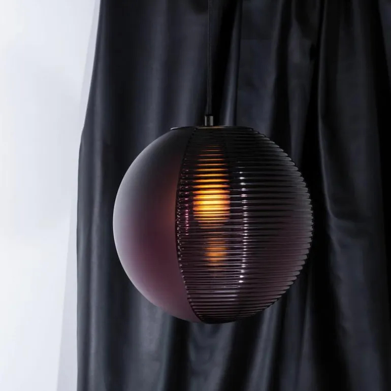 De Stellar Hanglamp is verkrijgbaar in vier verschillende kleuren; aubergine, Smokey Grey, transparant en wit. Daarnaast heeft u keuze uit twee afmetingen, waarbij de kleinere variant (Ø23 cm.) is voorzien van verticale en de grotere variant (Ø31 cm.) van horizontale strepen.r
