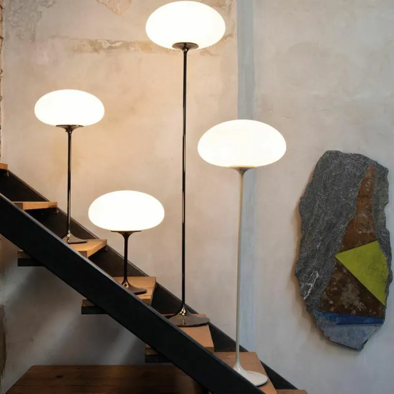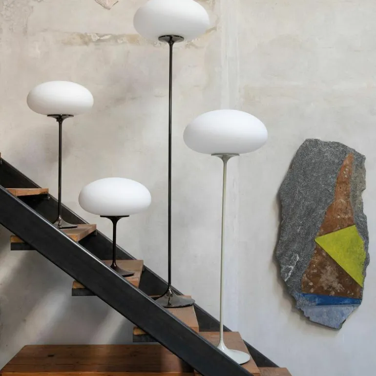 De serie bestaat uit verschillende designs geïnspireerd op de sterke en toch slanke stengels die bloemen ondersteunen. De basis is gemaakt van gegoten aluminium met hierop een lampenkap van mond geblazen glas. Het frosted glas zorgt voor een zachte gloed en creëert een aangename sfeer in uw interieur. Dit in combinatie met het moderne uiterlijk maakt dat de lamp in veel uiteenlopende interieurs goed tot zijn recht zal komen. r