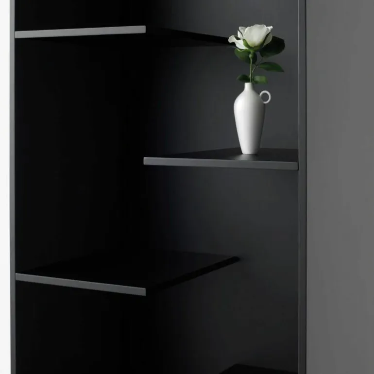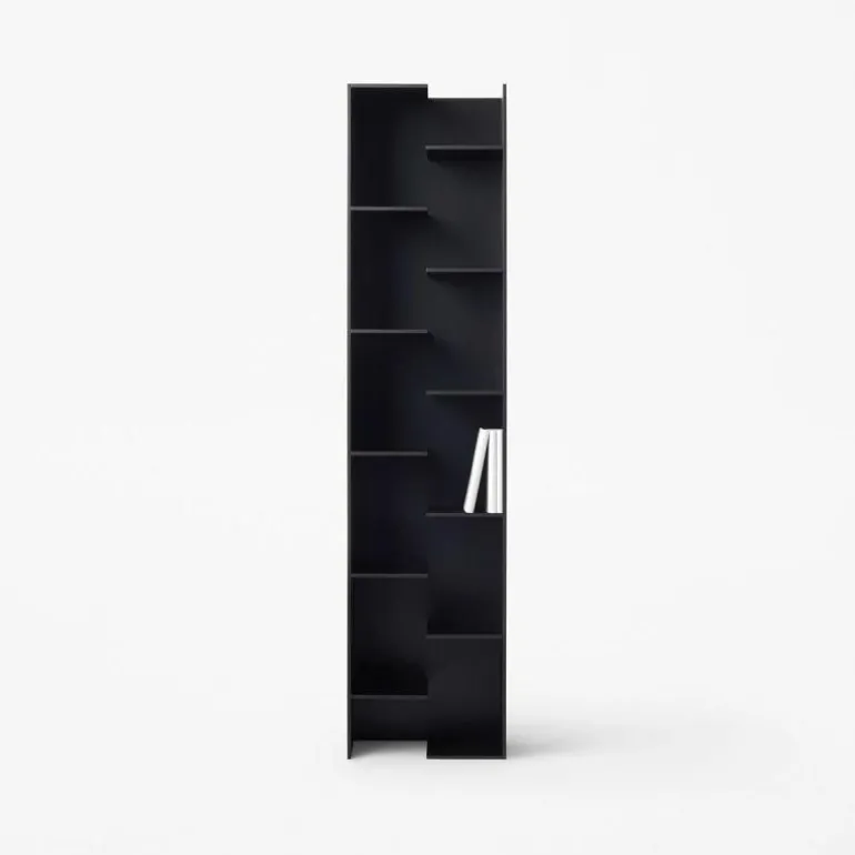 Om de boekenkast van stevigheid te voorzien is er gekozen om MDF te gebruiken. Zwart, wit en grijs zijn de kleuropties voor de Step boekenkast en de kast komt altijd in een matte afwerking. De boekenkast is direct leverbaar in de kleuren wit en zwart. Tevens wordt de boekenkast geleverd met een wandbevestigingssysteem waarmee u er zeker van bent dat de kast goed tegen de muur blijft staan. Deze flexibele, fantasierijke boekenkast is daarnaast te verkrijgen in twee verschillende maten. r
