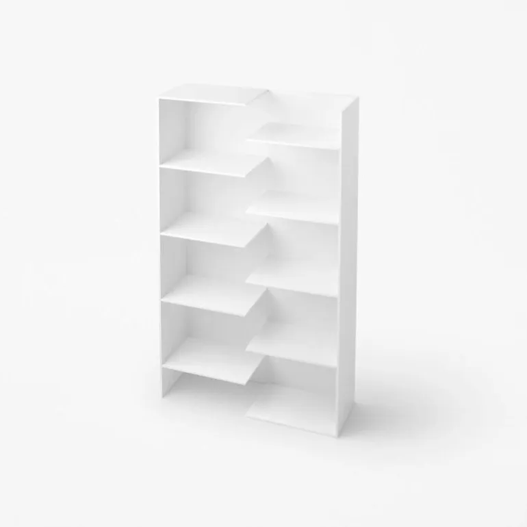 De Desalto Step Boekenkast is een ontwerp van Nendo. Minimalistisch, luchtig en dynamisch. Dat roept de Step boekenkast meteen op. De Japanse Oki Sato, hoofdontwerper bij Nendo, kreeg inspiratie toen hij naar de manier van construeren van huizen keek. Door een sterk geraamte te combineren met zachte, strakke lijnen is de kast in staat de zwaarste boeken te dragen. Planken wisselen elkaar af in hoogte en creëren samen een opstapeling aan mogelijkheden. Door de ruimte tussen de balken krijgt de boekenkast een extra dimensie waardoor er extra ruimte wordt gevormd. Deze kast is eveneens dynamisch doordat elk individuele boekenplank verwijderbaar is. Werkelijk elk formaat boek, krant of tijdschrift kan zo op een prachtige plaats bewaard worden. Bovendien kan het leesmateriaal als het waren leunen tegen de achterkant van de dichtstbijzijnde boekenplank.r