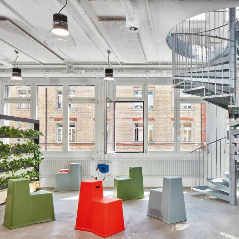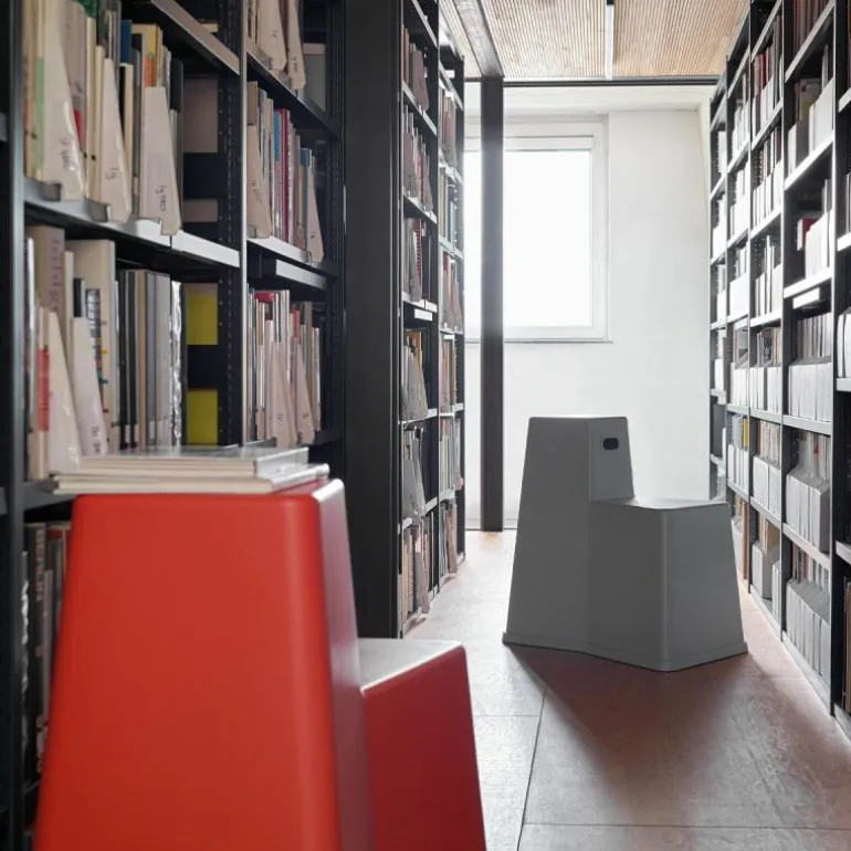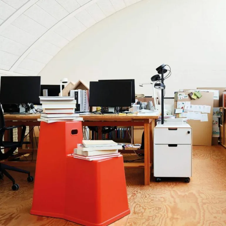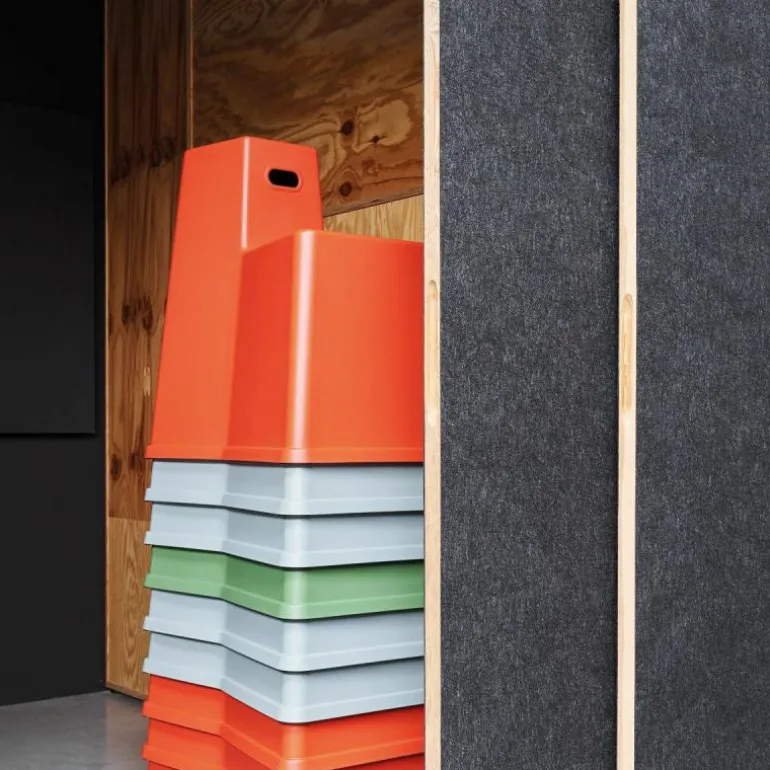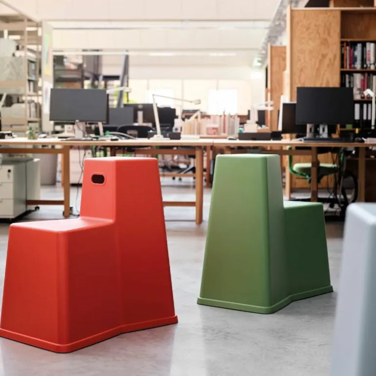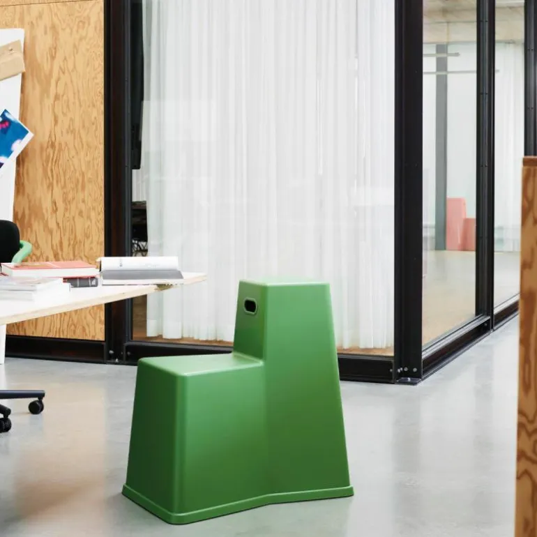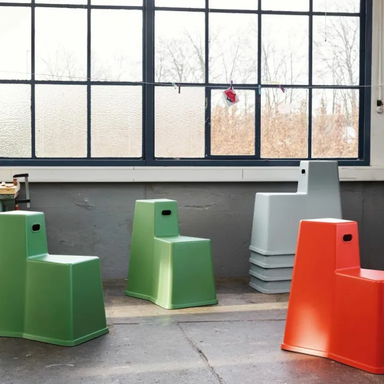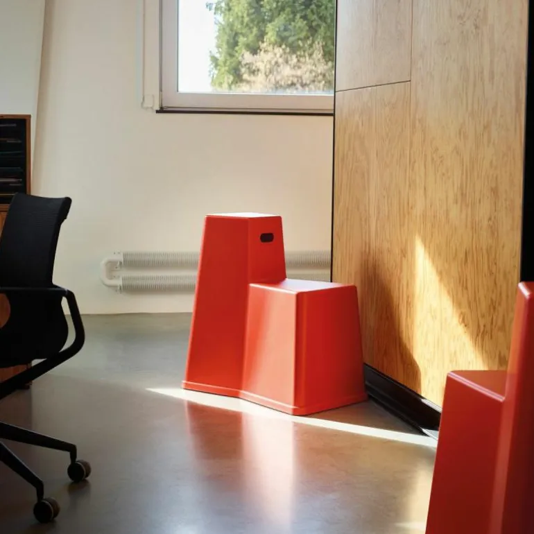De multifunctionele Stool-Tool Kruk nodigt uit om verschillende zitposities aan te nemen en is door het eenvoudige design een vrolijke toevoeging in elke ruimte. U heeft de keuze uit de kleuren Light Grey, Industrial Green en Poppy Red.