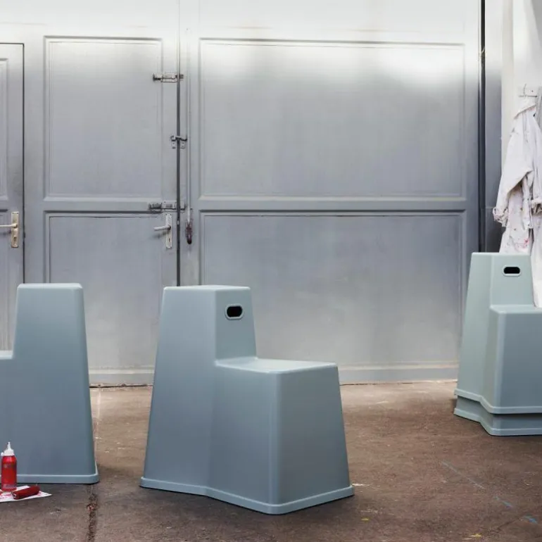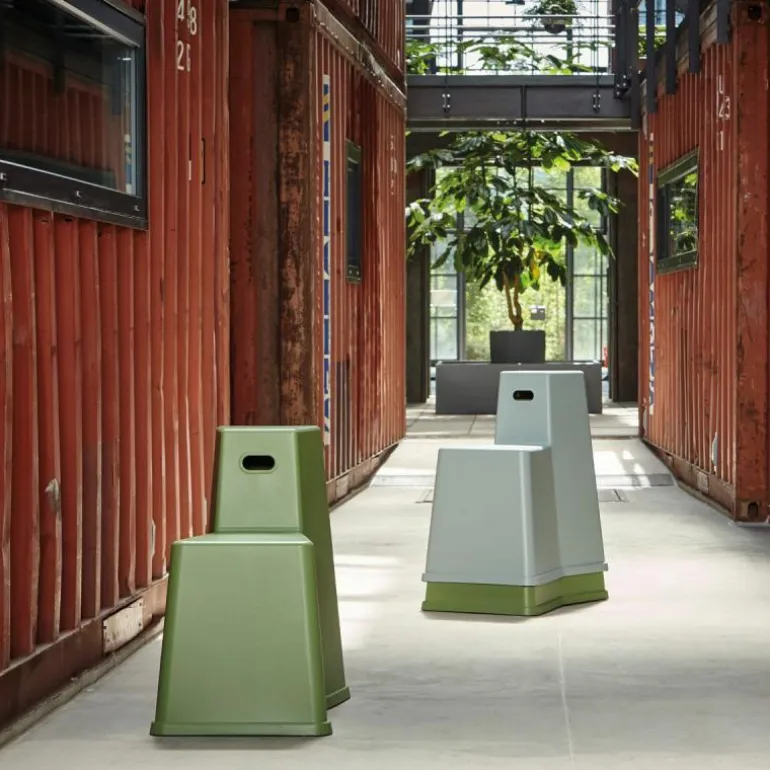 Dit ontwerp is licht van gewicht en makkelijk stapelbaar. Hij is gemaakt van polypropyleen en door de handvatten moeiteloos te verplaatsen. Tijdens het productieproces zijn er speciale stoffen toegevoegd die de kruk beschermt tegen kleurvervaging door UV-licht. Daarentegen raadt Vitra aan om blootstelling aan zonlicht te beperken, om zo kleurverandering te voorkomen. r