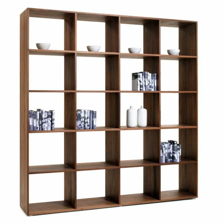 De Kluskens Store Boekenkast is een ontwerp van Kluskens. In het Limburgse Nederweert wordt de Store kast door professionals in elkaar gezet, van het zagen en drogen van het hout tot de afwerking van het eindproduct. De liefde van Kluskens voor de natuur is goed terug te zien in het massieve meubel, waar het Nederlandse merk enkel het beste hout voor selecteert. Deze kast van massief hout telt verschillende open vakken waarin u uw boeken en verzamelobjecten kunt tentoonstellen. Gebruik de Store boekenkast als wandkast of handige roomdivider in grote ruimtes.De Store kast is bij MisterDesign direct online met twintig vakken in massief geolied notenhout te bestellen. De afmetingen van deze direct bestelbare variant bedragen 210 centimeter in de breedte, 215 centimeter in de hoogte en 40 centimeter in de diepte. De Store kast kan echter compleet op maat worden gemaakt in eiken- of notenhout in een afwerking naar keuze. Hiervoor kunt u contact opnemen met onze interieurspecialisten, zij helpen u graag met het samenstellen van uw op maat gemaakte Store boekenkast.
