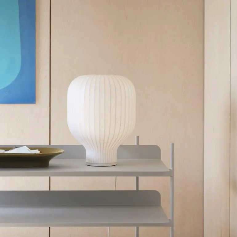 Het coconmateriaal wordt verstevigd en blijft in vorm middels een stalen structuur aan de binnenkant. Bovendien lijkt de luchtige tafellamp te zweven doordat de cocon rust op een voet van ijzer en aluminium. Dankzij zijn dimbare functie is het licht geheel naar wens aan te passen. Een warme gloed zorgt voor een knus gevoel, terwijl feller licht ideaal is tijdens het lezen van een boek. Niet alleen is het design geschikt als sfeervolle tafellamp, maar ook als nachtlampje in de slaapkamer.