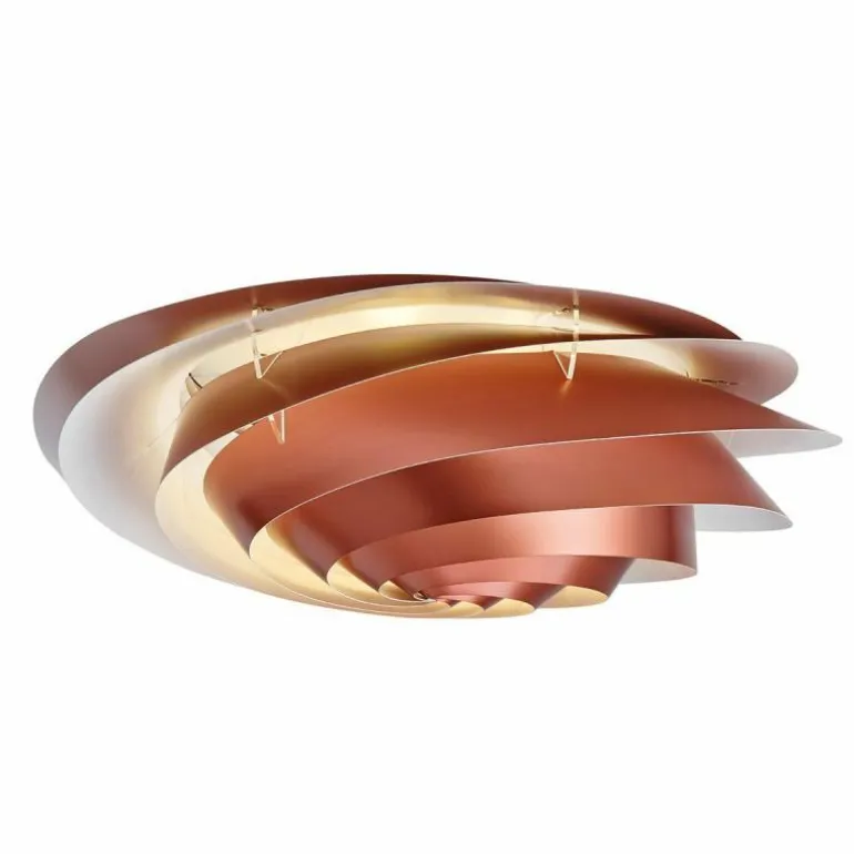Deze SWIRL Wand- en Plafondlamp heeft een betoverende vorm. Aan de binnenzijde zijn de gelaagde kunststof elementen wit van kleur, waardoor ze het licht van binnenuit reflecteren. De buitenzijde is verkrijgbaar in koper of wit. U heeft keuze uit twee afmetingen: r