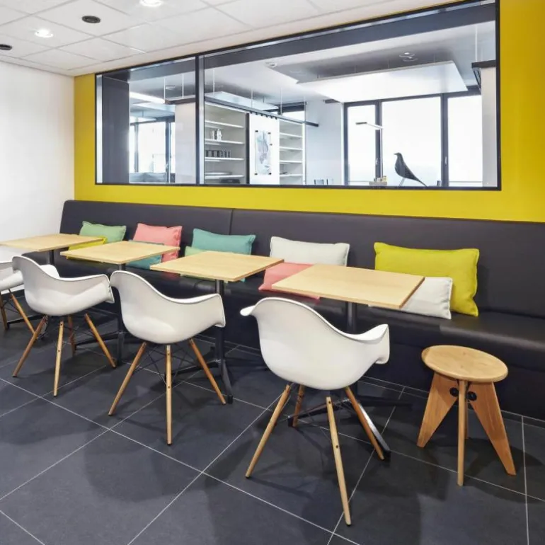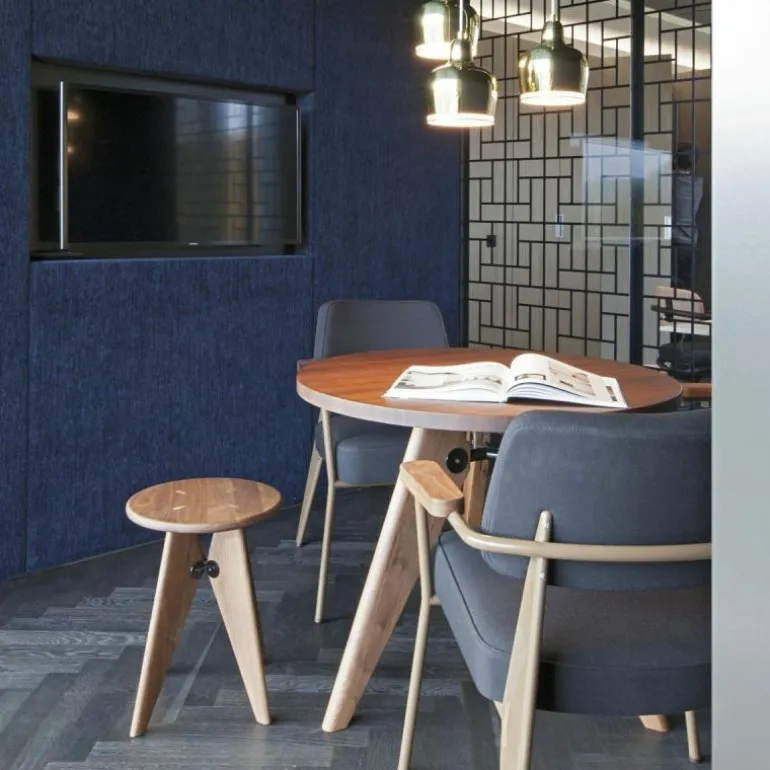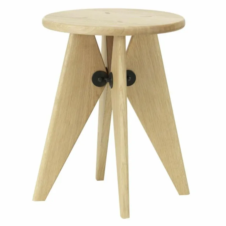 Het tijdloze design van de Tabouret Solvay Kruk toont deze kenmerkende ontwerpstijl. Vier stevige houten poten vormen de basis van de kruk. Een centraal geplaatst metalen element vormt een stevige verbinding met het hout. Het tonen van deze verbindingen en constructie-elementen geeft deze kruk zijn eigen unieke uitstraling. r