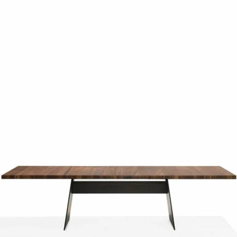 De Tadeo Eettafel heeft altijd een diepte van 100 centimeter en is 75 centimeter hoog. Wat betreft het blad heeft u de keuze uit een breedte van 200, 240 en 278 centimeter. Deze uitvoeringen hebben geen uitschuifbaar gedeelte. Kiest u voor de uitschuifbare variant, dan heeft u de keuze uit een breedte van 210 (tot 280 cm.) of 230 (tot 300 cm.) centimeter. Het frame van de tafel is gemaakt van aluminium (voorzien van een matte bronzen poedercoating) of van wit geolied eikenhout, gerookt geolied eikenhout, gebrand geolied eikenhout of geolied notenhout (allen massief).r