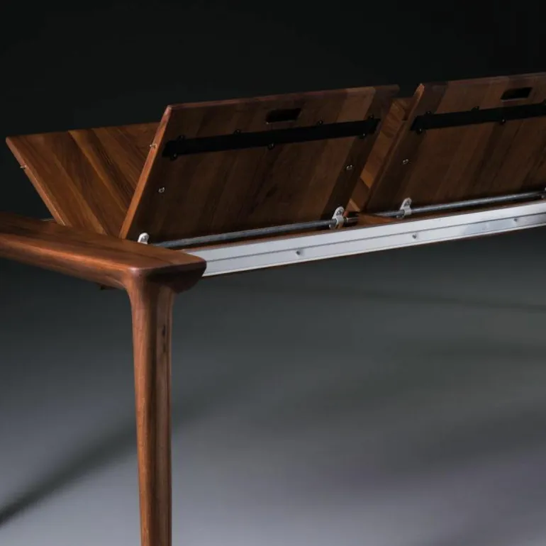 De Tara Tafel Uitschuifbaar is vervaardigd uit: Amerikaans/Europees walnoot, eiken, essen, kersen, iepen of esdoorn. Het hout wordt afgewerkt in een olie of zeep naar keuze. Door de keuze uit elf verschillende formaten is er één tafel geselecteerd die direct te bestellen is. Dit model heeft een lengte van 200 centimeter, breedte van 94 centimeter en hoogte van 76 centimeter en is vervaardigd uit Europees walnoot. Het hout is afgewerkt met een natuurlijke olie en het tafelblad is aan weerszijden met 55 centimeter uit te breiden dankzij het verstelbare mechanisme. Heeft u interesse in een andere afmeting, houtsoort of afwerking? Neem contact op met onze interieurstylisten in de winkel, of kom even langs. Zij helpen u graag verder.