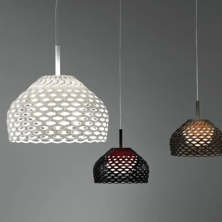 De Tatou Hanglamp, ontworpen door Patricia Urquiola voor Flos, is de gloednieuwe lamp waarmee Flos onlangs haar 50ste verjaardag vierde. Het Franse woord Tatou betekend gordeldier en geïnspireerd door het pantser van dit dier is de Hanglamp op een zeer speciale manier vervaardigd uit polycarbonaat en staal. Door het speciale ontwerp heeft de lamp niet alleen een erg bijzonder en bovenal prachtig uiterlijk maar zorgt de lamp ook nog voor een spektakel van licht en schaduw. r