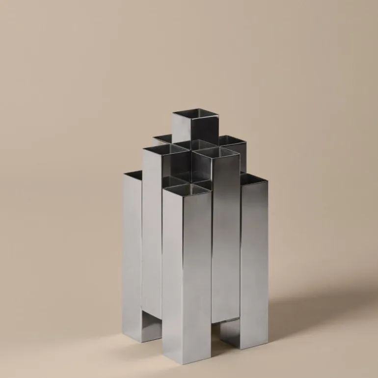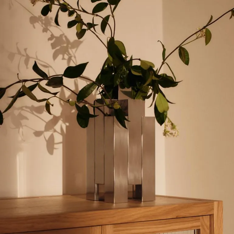 De Ferm Living Tessera Vaas is ontworpen met een sterke architectonische uitstraling en vormt een sculpturaal element binnen het interieur. De vorm is krachtig en eenvoudig tegelijk, waardoor het object zowel met als zonder bloemen tot zijn recht komt. Door het gebruik van gepolijst roestvrij staal krijgt de vaas een spiegelend oppervlak dat het licht op dynamische wijze weerkaatst. Dit zorgt voor een levendige interactie met de omgeving en benadrukt de strakke contouren van het ontwerp.De Tessera Vaas is vervaardigd uit hoogwaardig roestvrij staal met een handgepolijste afwerking. Dit materiaal biedt stevigheid, duurzaamheid en een langdurige glans. Door de gladde, reflecterende structuur verandert het aanzicht van de vaas afhankelijk van het licht en de hoek van waaruit het wordt bekeken. De productie en afwerking zijn uitgevoerd met precisie, waardoor een hoogwaardige kwaliteit en een verfijnde uitstraling worden bereikt.Met een breedte van 12 centimeter, een hoogte van 28 centimeter en een diepte van 12 centimeter heeft de Tessera Vaas een uitgebalanceerd formaat dat geschikt is voor uiteenlopende toepassingen. De vaas kan dienen als houder voor bloemstukken of takken, maar functioneert ook als zelfstandig object op een tafel, plank of dressoir. Door de combinatie van geometrische proporties en een glanzend oppervlak ontstaat een visueel accent dat zowel rust als dynamiek toevoegt aan de ruimte.De gebruikte materialen maken het ontwerp robuust en onderhoudsvriendelijk. Voor het schoonmaken wordt aangeraden het oppervlak af te nemen met een licht vochtige doek. Schurende middelen of agressieve reinigingsproducten dienen te worden vermeden om de glans te behouden. Kleine kleur- of structuurvariaties kunnen optreden door de eigenschappen van het materiaal, wat bijdraagt aan de authenticiteit van het product.De Tessera Vaas van Ferm Living is geregistreerd als designobject en weerspiegelt de aandacht voor materiaalkeuze, vorm en afwerking die kenmerkend is voor het merk. De vaas biedt een balans tussen eenvoud en expressie en vormt een duurzaam element binnen het interieur. Door het reflecterende oppervlak en de heldere lijnen voegt het ontwerp een gevoel van diepte en verfijning toe aan de ruimte. De Tessera Vaas is daarmee een krachtig voorbeeld van modern vakmanschap met blijvende waarde.