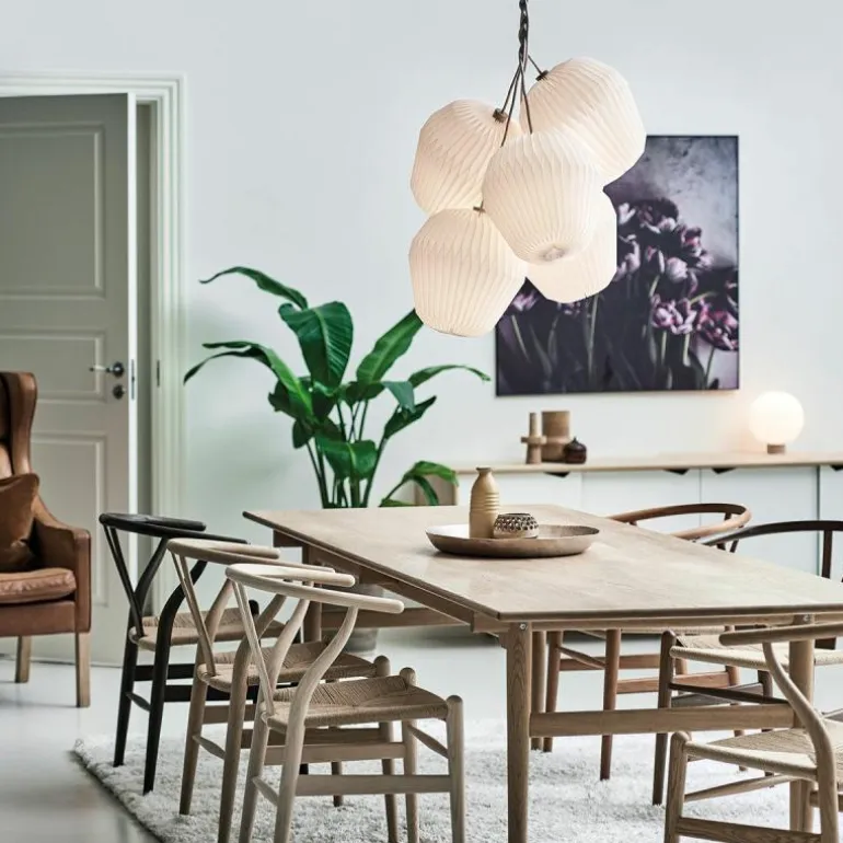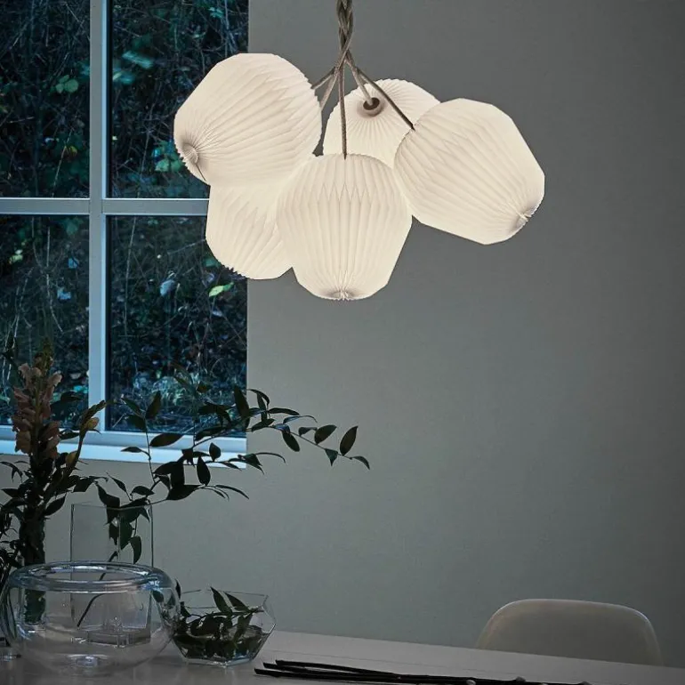 U heeft bovendien keuze uit lampenkappen van papier of kunststof. Zoals we van LE KLINT gewend zijn, worden de lampenkappen op traditionele wijze met de hand geplooid door echte vakmensen.