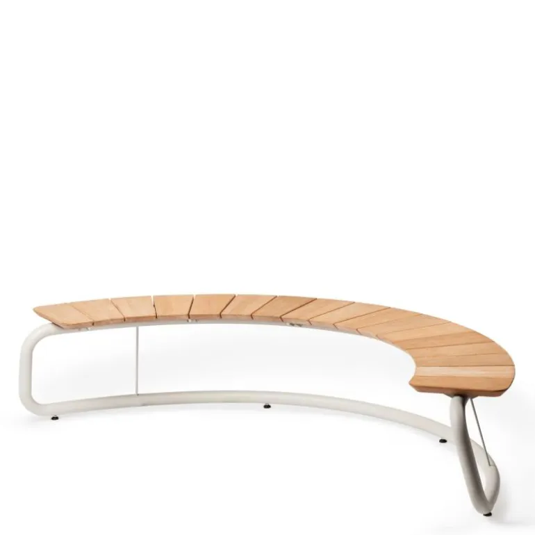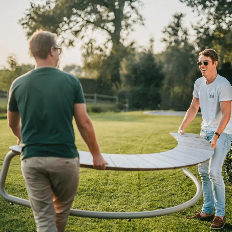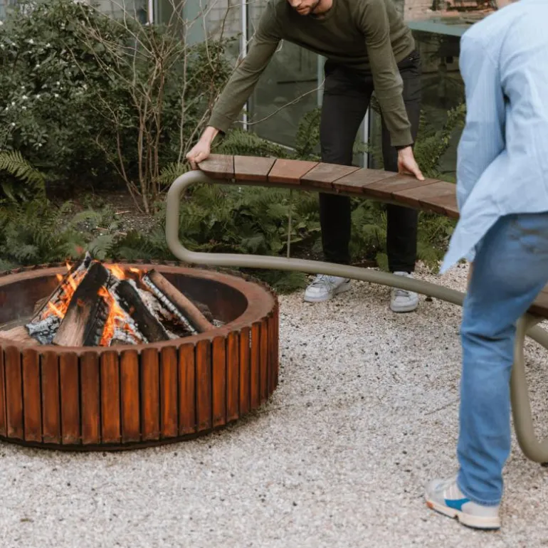 The Bow Bank van Wunder is ontworpen om een sfeervolle, verbindende plek te creëren. In de tuin, op het terras of in een publieke buitenruimte. Met zijn uitnodigende gebogen vorm en ruimte voor maximaal vijf personen vormt The Bow Bank een centraal punt voor ontmoeting, ontspanning en interactie.De vormgeving is gebaseerd op sociale dynamiek: licht gebogen zittingen brengen mensen op natuurlijke wijze dichter bij elkaar. Of het nu gaat om een openhartig gesprek bij de vuurschaal of informeel overleg in een parkachtige omgeving, The Bow Bank faciliteert menselijke verbinding met een sterke visuele aanwezigheid.Voor de constructie is gebruikgemaakt van hoogwaardige materialen die garant staan voor een lange levensduur. Het zitvlak is vervaardigd uit hardhout met duurzaamheidsklasse A, dat niet alleen esthetisch aantrekkelijk is door zijn warme gloed, maar ook bestand is tegen intensief buitengebruik. Het stalen onderstel is gepoedercoat in een moderne, weerbestendige afwerking en voorzien van verstelbare stelvoetjes, zodat de bank stabiel staat op elke ondergrond.The Bow Bank is modulair inzetbaar en combineert robuustheid met verfijnde lijnen. Hierdoor sluit het ontwerp naadloos aan bij uiteenlopende buiteninrichtingen: van hospitality en publieke ruimtes tot exclusieve privéterrassen. De tactiele kwaliteit van het hout, in combinatie met het industriële karakter van het staal, resulteert in een uitgebalanceerde uitstraling die rust en kwaliteit uitstraalt.Wunder staat bekend om zijn doordachte ontwerpen die esthetiek koppelen aan dagelijks gebruiksgemak. The Bow Bank is daar een treffend voorbeeld van. Deze bank is niet slechts een zitmeubel, maar een uitnodiging tot samenzijn, ontworpen met oog voor detail, comfort en context.