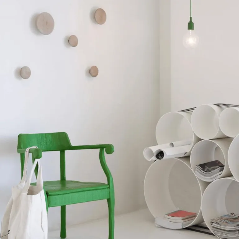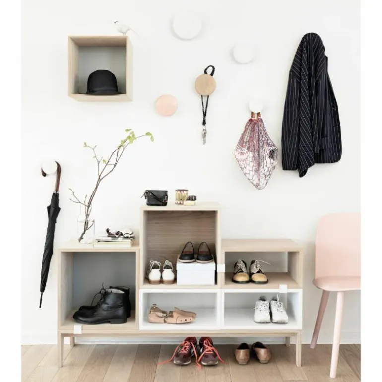 De Dots Kledinghaken, set van 5 is een product van Muuto. Dit Deense designmerk bundelt haar krachten met bekende designers om tot originele ontwerpen te komen. De Noorweegse Lars Tornøe kwam met het design van The Dots, die tot op heden een groot succes zijn. Tornøe studeerde in 2006 af aan de Bergen National Academy of the Arts and Design. Van 2006 tot 2010 was hij onderdeel van het designduo Tveit & Tornøe, maar nu heeft hij zijn eigen designstudio in Noorwegen.
