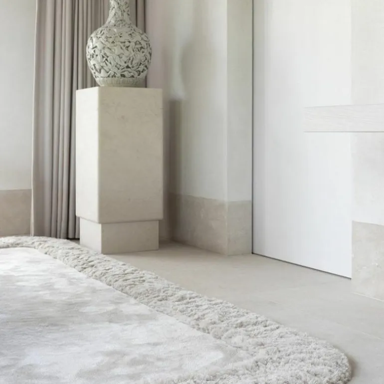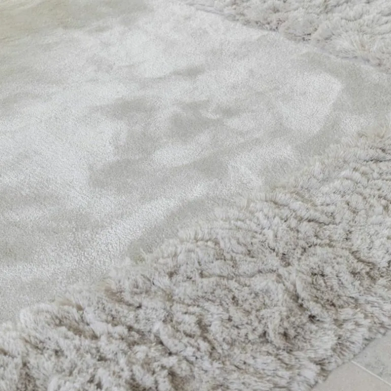 Omdat het Think Big Vloerkleed met de hand wordt getuft, is hij in elke gewenste vorm verkrijgbaar. De eucalyptusgaren hebben een hoogte van 12 millimeter en de 20 centimeter brede rand van mohairgaren heeft een hoogte van 45 millimeter.r