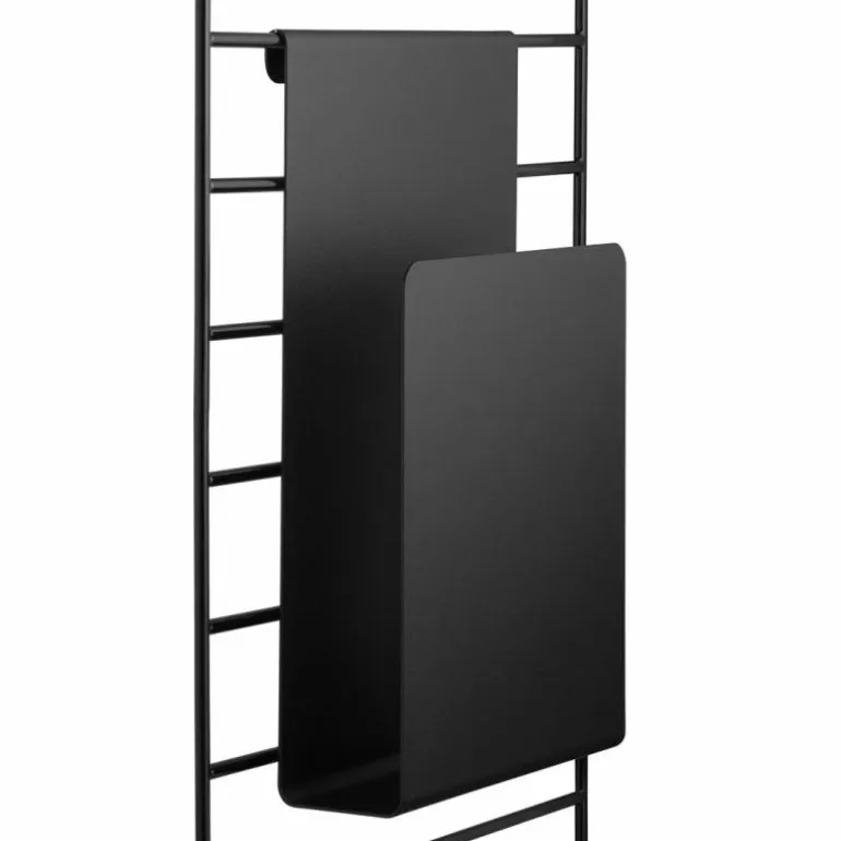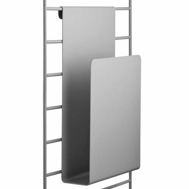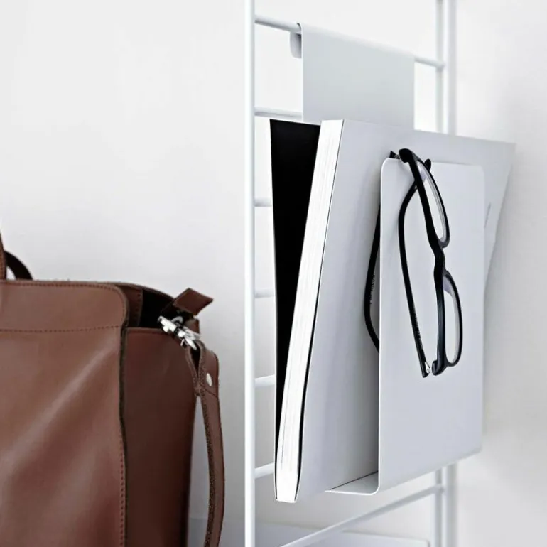 De String Tijdschriftenhouder is ontworpen door Anna von Schewen & Björn Dahlström. In 1949 ontwierp Nisse Strinning het String Kastensysteem. Dit systeem maakt het mogelijk om een kast helemaal naar wensen samen te stellen en in te richten. Vanaf de dag dat het op de markt kwam, was het een groot succes en dat is het decennia later nog steeds. Ook nu Nisse er niet meer is, wordt de String serie nog regelmatig uitgebreid met slimme, handige onderdelen, waaronder deze Tijdschriftenhouder. Speciaal ontworpen om op te hangen aan de wandbeugels van het Stringsysteem of het Grid Wandrek van String. De houder is open aan de zijkant, zodat u er ook gerust grotere papieren tussen kan stoppen. Of bedenk een andere functie voor de houder, opbergplekken heeft u immers nooit genoeg! De metalen tijdschriftenhouder is 17 centimeter breed, 27 centimeter hoog en 5 centimeter diep. Verkrijgbaar in wit, zwart en grijs.