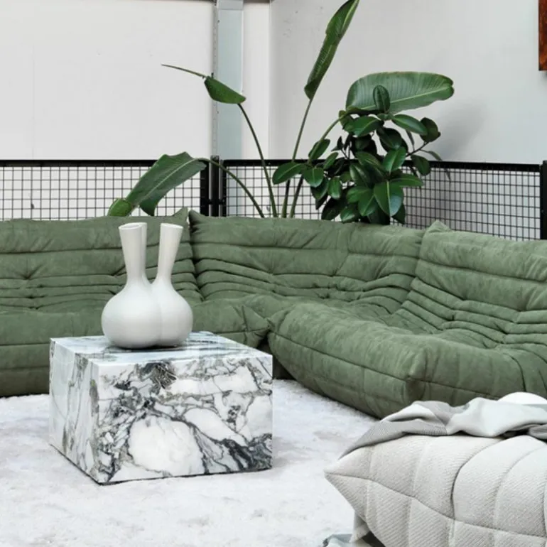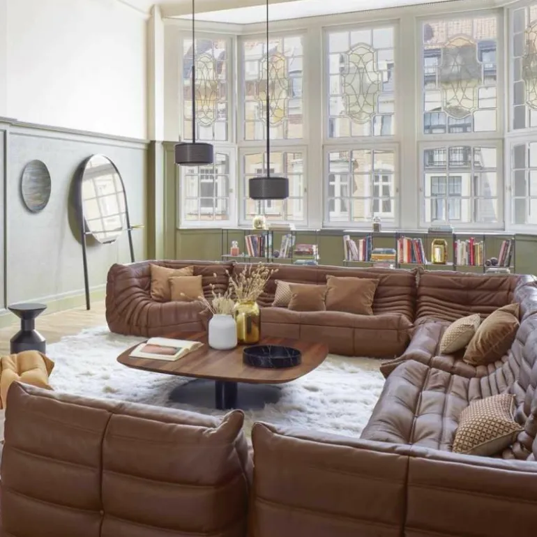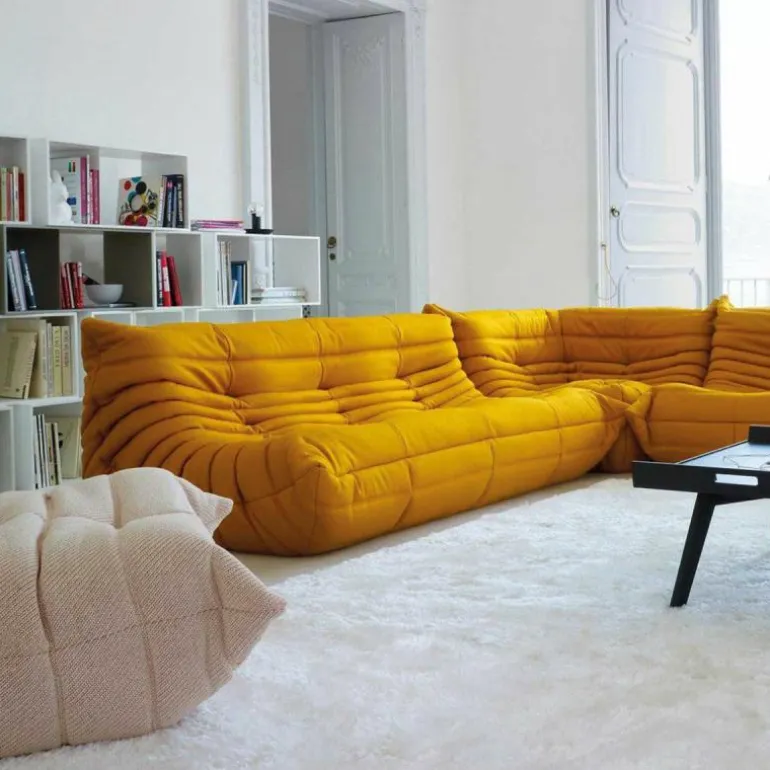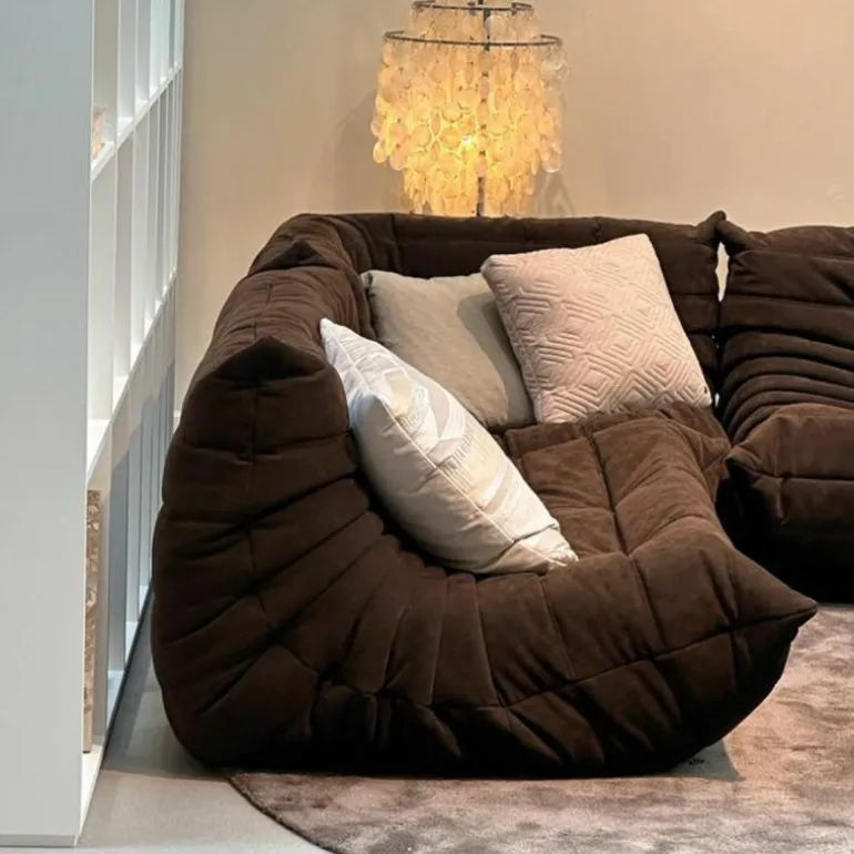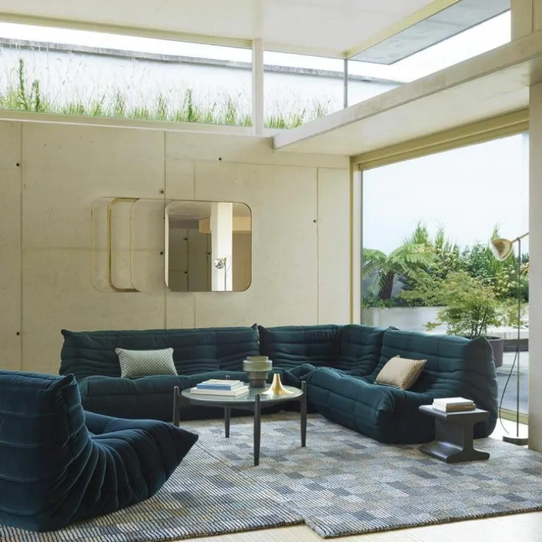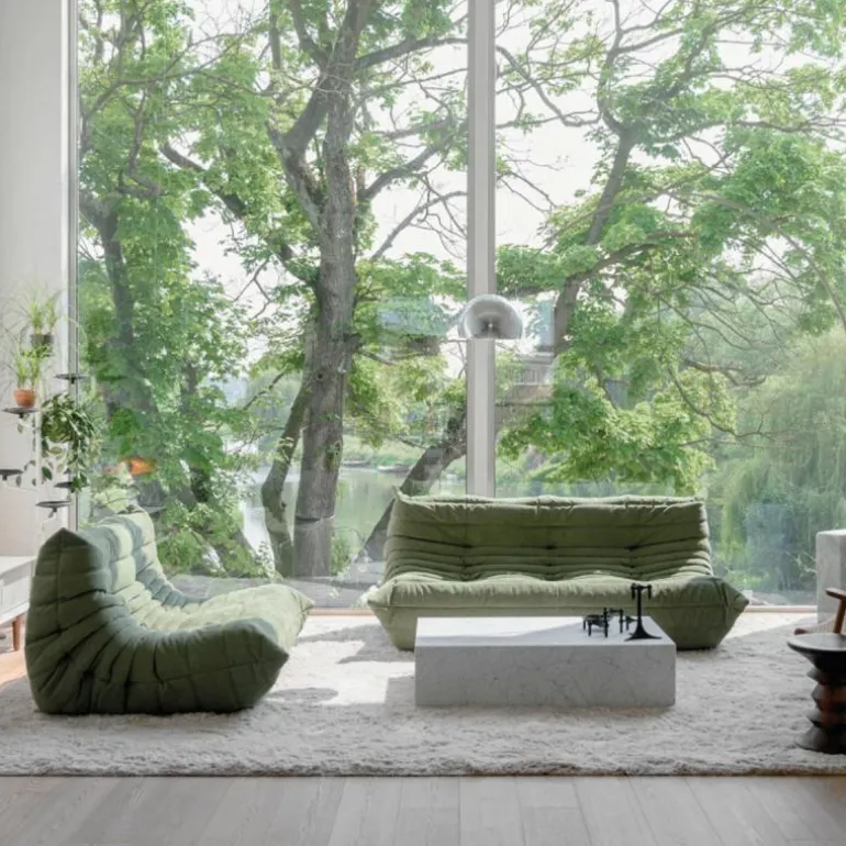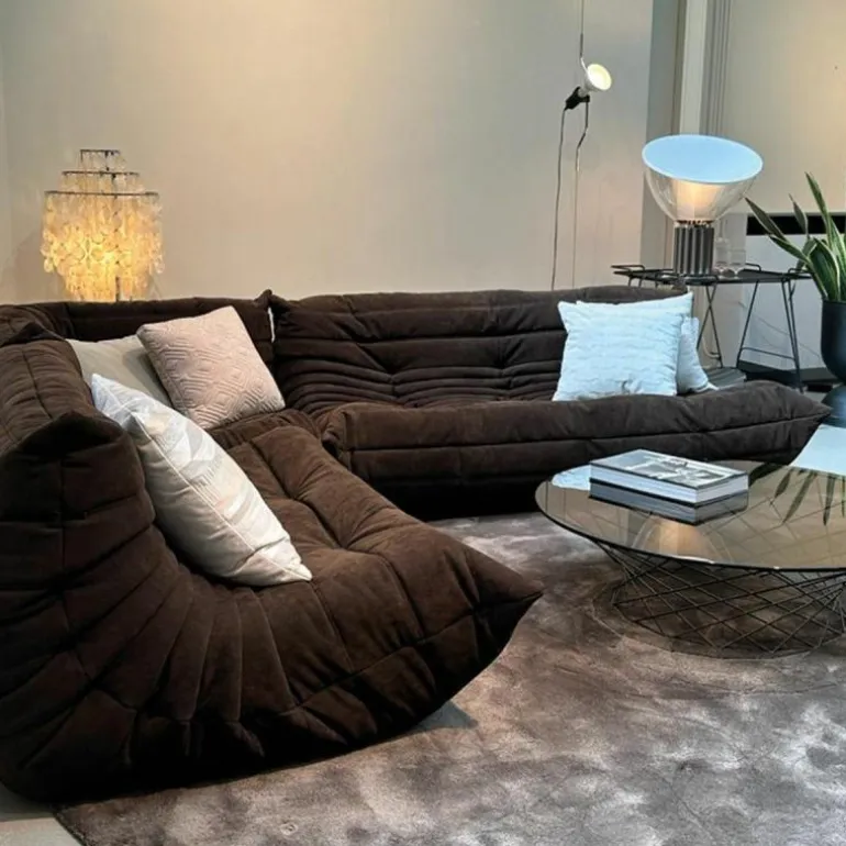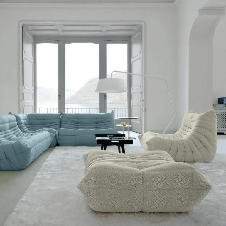 De bekleding van de Togo 2-zits Bank is beschikbaar in een breed scala aan hoogwaardige stoffen en leersoorten, zorgvuldig geselecteerd op duurzaamheid, tactiele kwaliteit en esthetiek. Deze veelzijdigheid maakt het mogelijk het meubel naadloos te integreren in uiteenlopende interieurstijlen – van minimalistisch en modern tot eclectisch of eigentijds klassiek. De zachte, geplooide bekleding in combinatie met de vloeiende, organische lijnen zorgt voor een onderscheidende visuele identiteit.