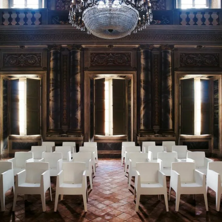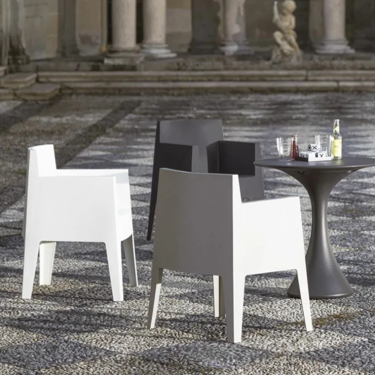 De armstoel is stapelbaar tot een maximum van 14 stuks en is verkrijgbaar in de kleuren ‘Mustard Yellow’, ‘Carnation’, ‘Light Grey’, wit en zwart. Op aanvraag zijn er twee soorten losse covers van katoen voor over de stoelen verkrijgbaar.